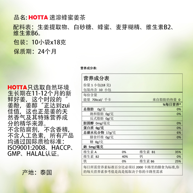 Thailand HOTTA FUDA honey ginger tea bag conditioning body cold to remove moisture to remove cold ginger soup aunt pain Brewing drink bagged