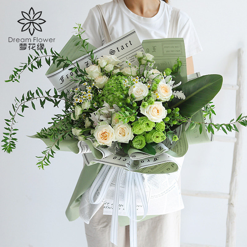 Dream flower edge new bouquet wrapping paper Waterproof Ouya paper English paper Floral packaging materials Double-sided paper flower shop supplies