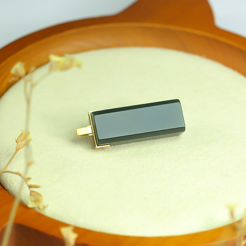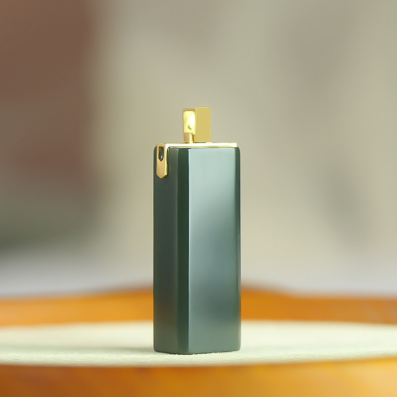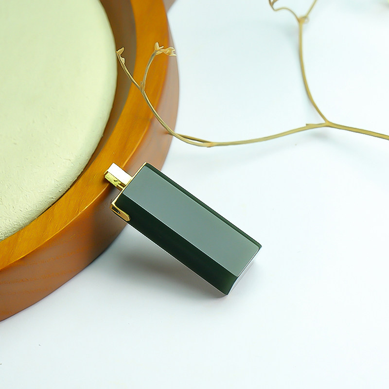 Brother Beard Jewelry Hetian Jade Pendant Taqing First Class Special Fine Material 18k Gold Inlaid Jade Long Strip Mini Seal