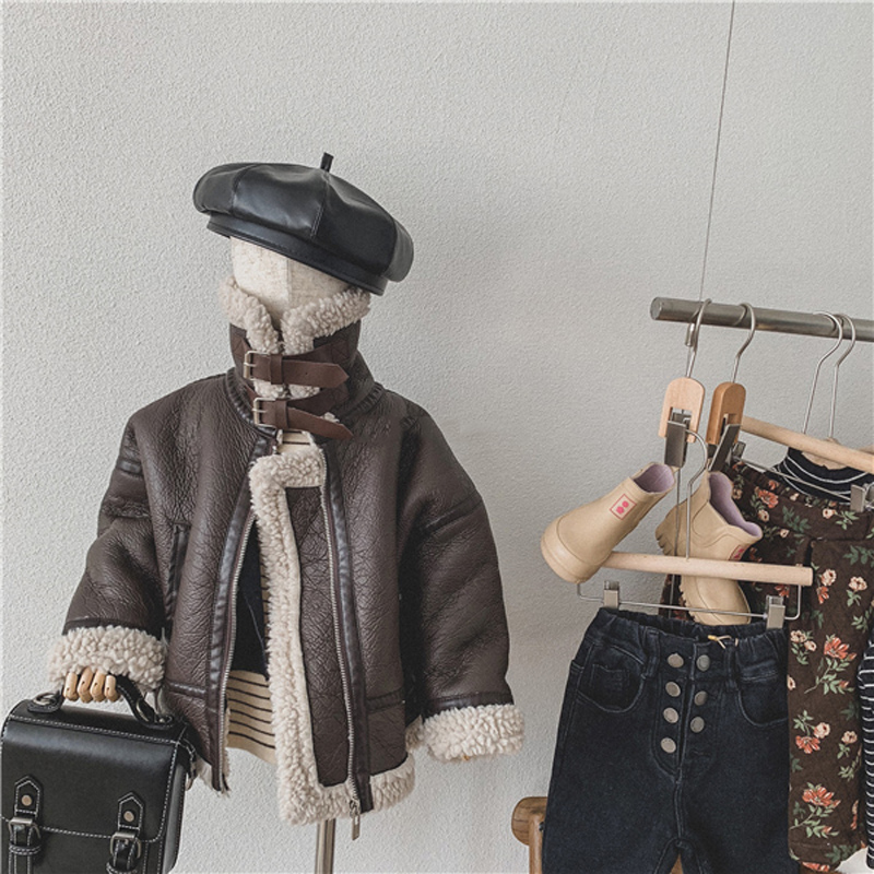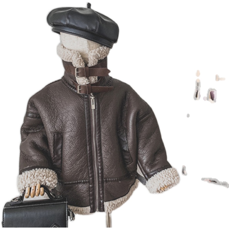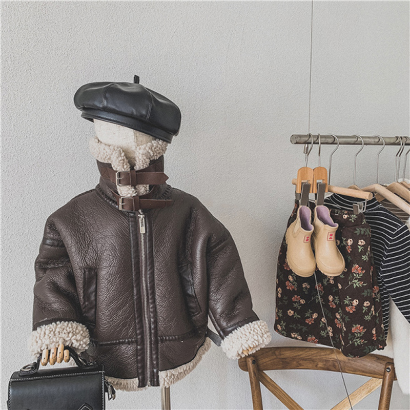 South Korean children's clothing children's leather jacket boy girl 2020 new autumn and winter style garnter thickened foreign pie 100 hitch