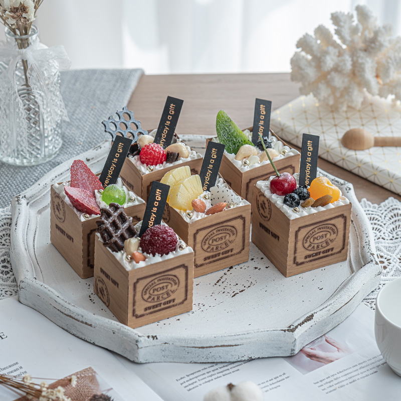 Simulation cake model square fruit cupcakes with wind decoration scene arrangement dessert table swing pieces shooting props