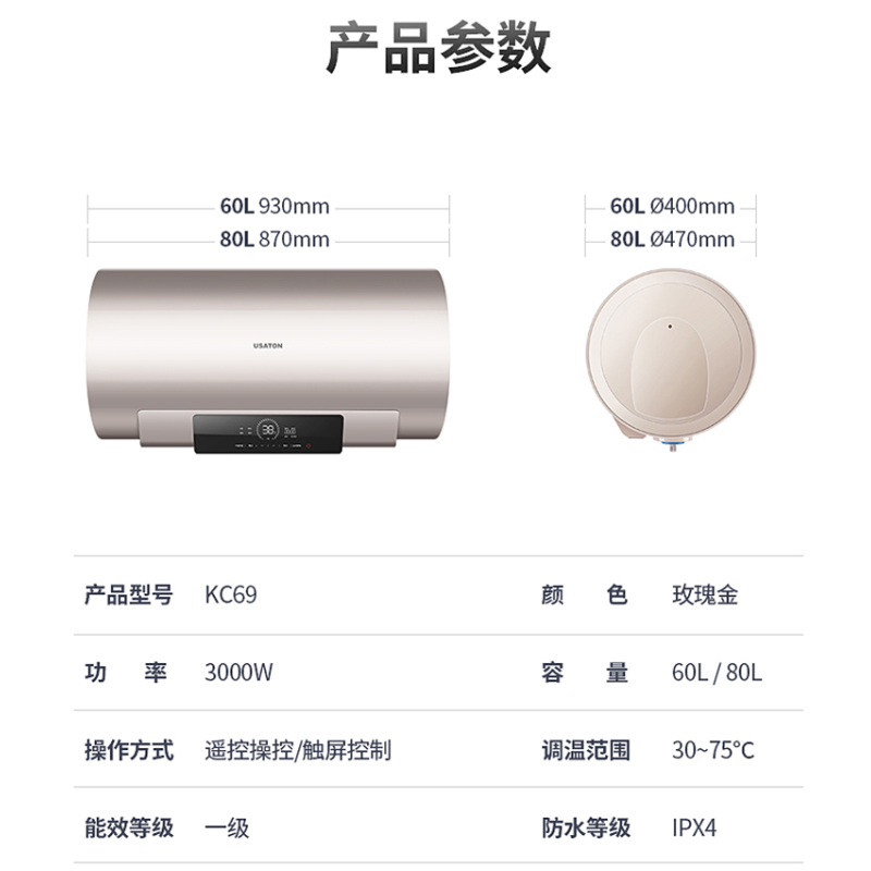 Ascendent kc69 electric water heater 60 80L household water storage type quick hot bath remote control shower water outlet power off