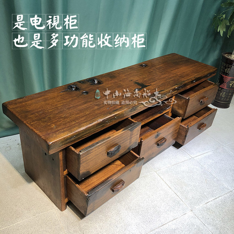 Old ship wood TV cabinet small apartment living room household storage cabinet solid wood furniture Chinese antique floor cabinet TV cabinet