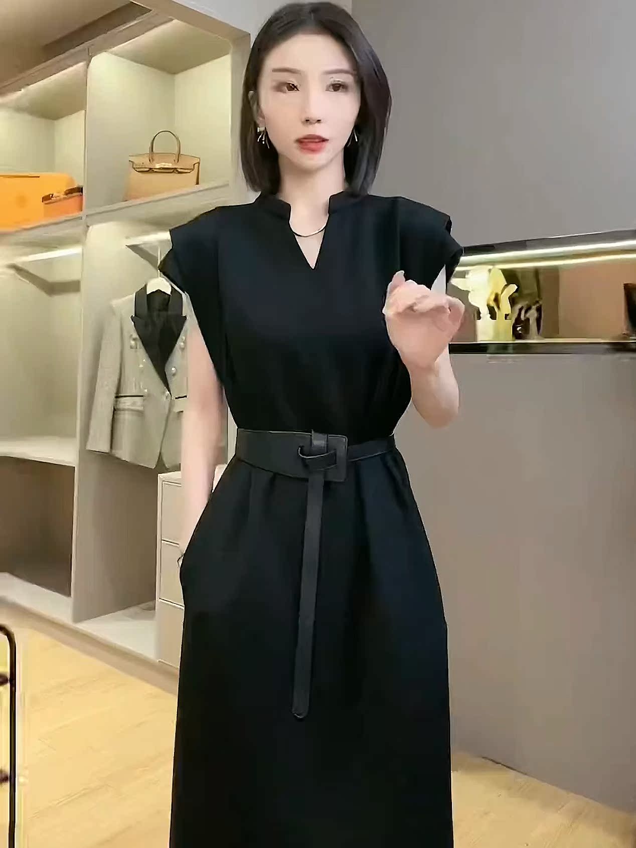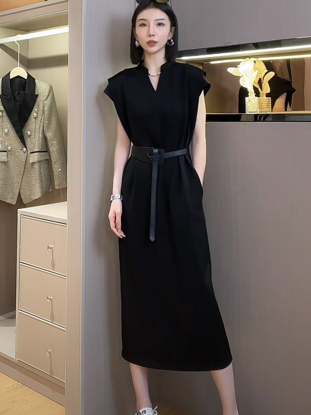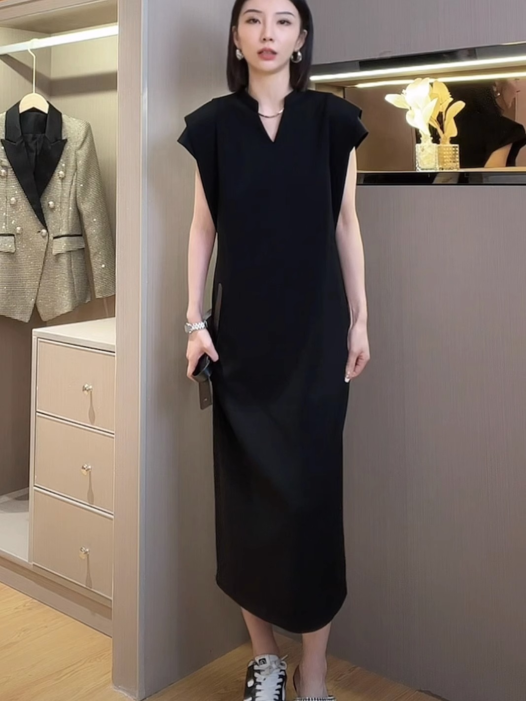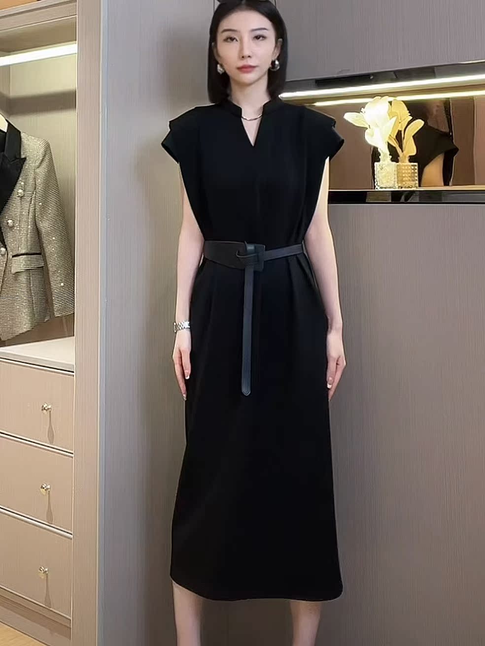 2023 Summer new Fashion temperament Long style black one-piece dress High sense high waist Slim Skirt Short Sleeve Woman-Taobao