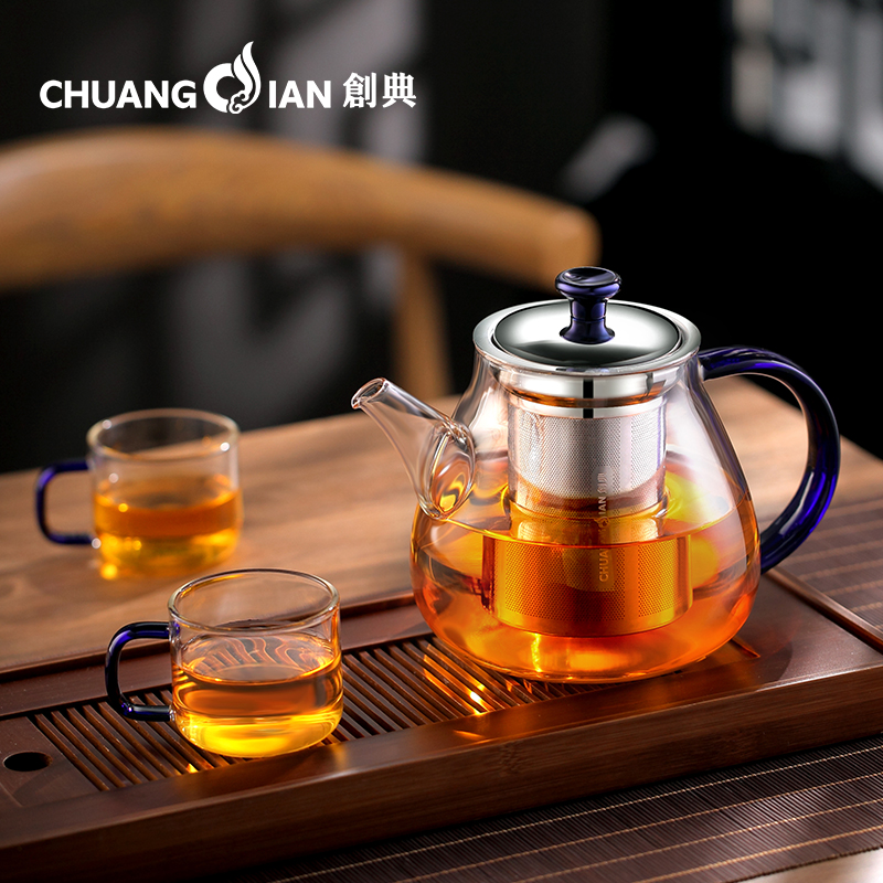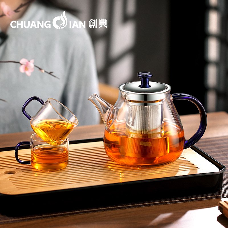 Chuangdian high temperature resistant glass teapot thickened kettle black crystal furnace teapot household large-capacity flower teapot set