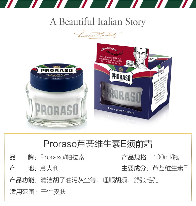 Proraso Paraso imported aloe vera massage cream men shaved before clean breast deep clean pores 100ML