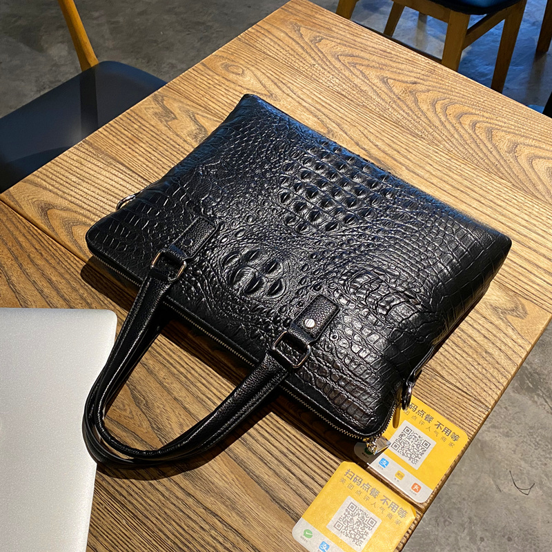 Men's Leather Briefing Simple Commuter Shoulder Package Crocodile Cowskin Handbag Business Travel Pack