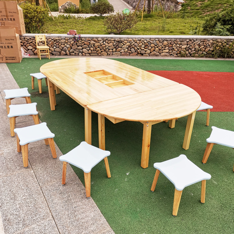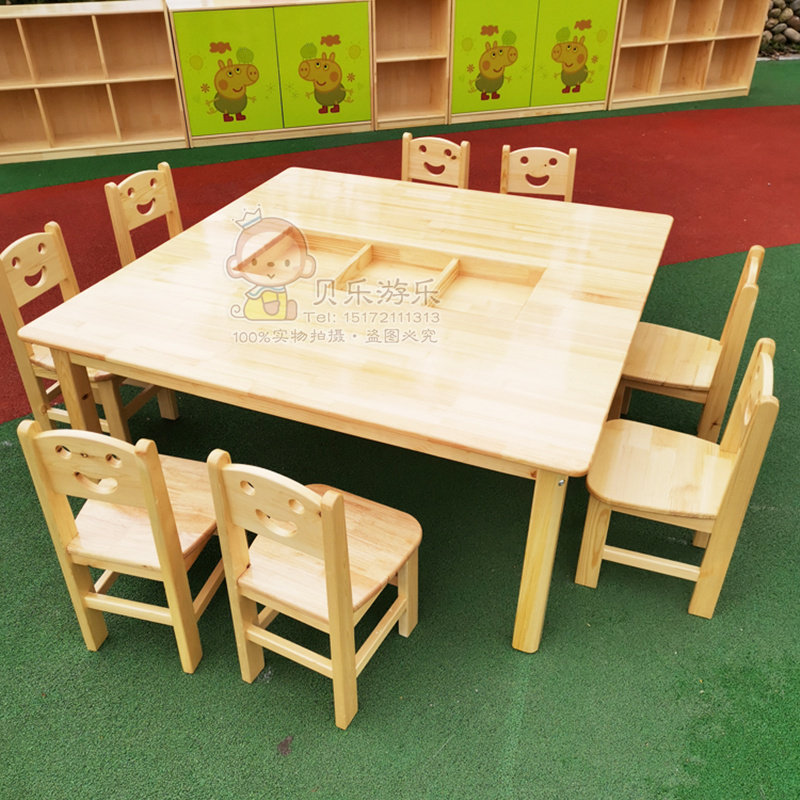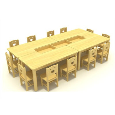 Kindergarten solid wood art desk Parent-child early education kindergarten children's art table painting table rectangular table painting table and chair set