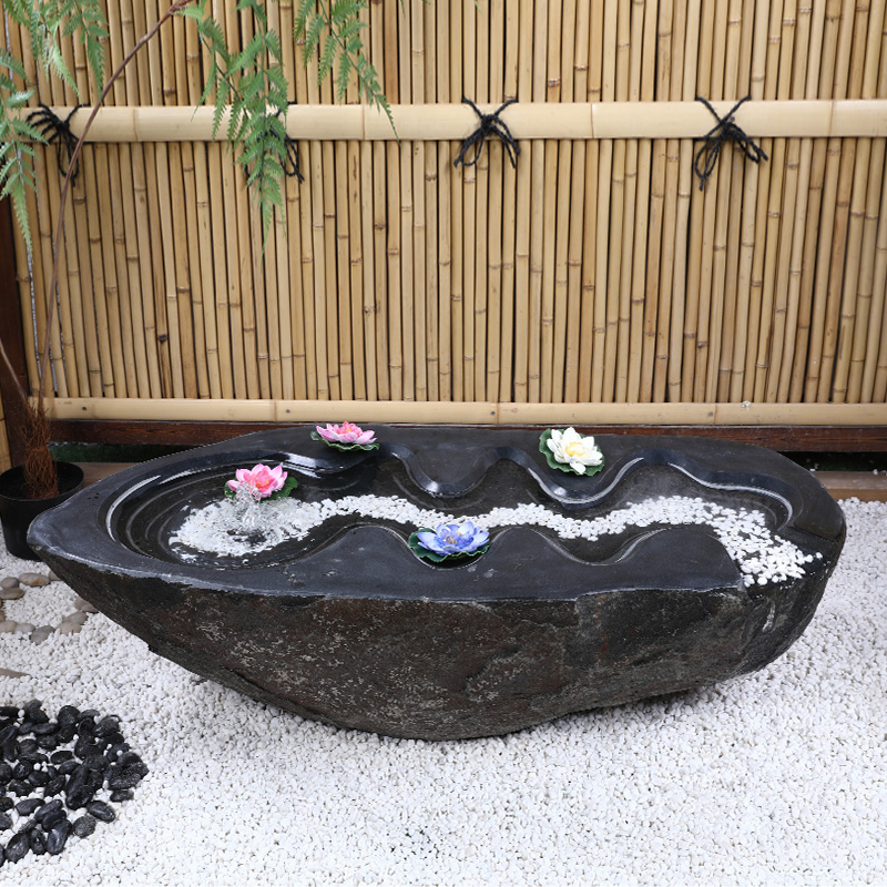 Original Stone Flowing Water Fountain Natural Water Bowl Day Style Courtyard Pool Outdoor Withered Landscape Stone Trough Villa garden View