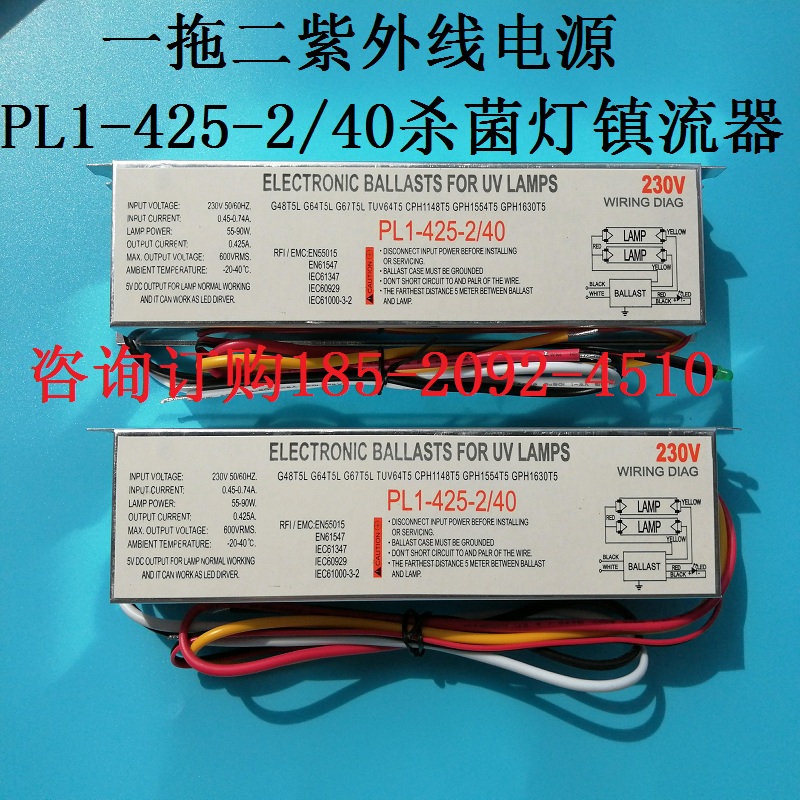 One drag two PL1-425-2 40 ultraviolet UV electronic ballast germicidal lamp ballast with 2 40W lamps