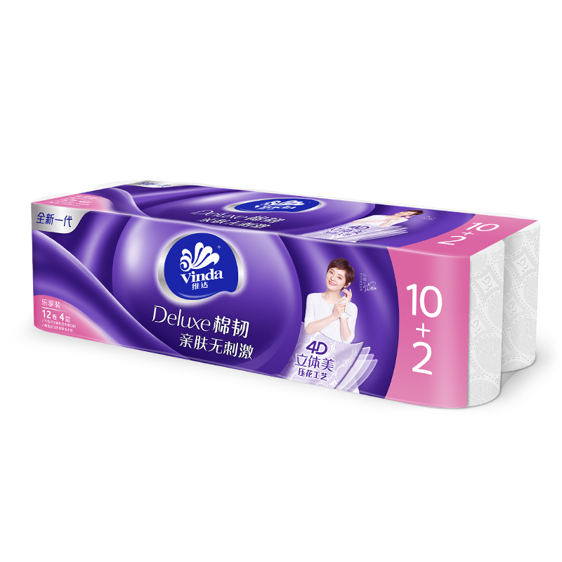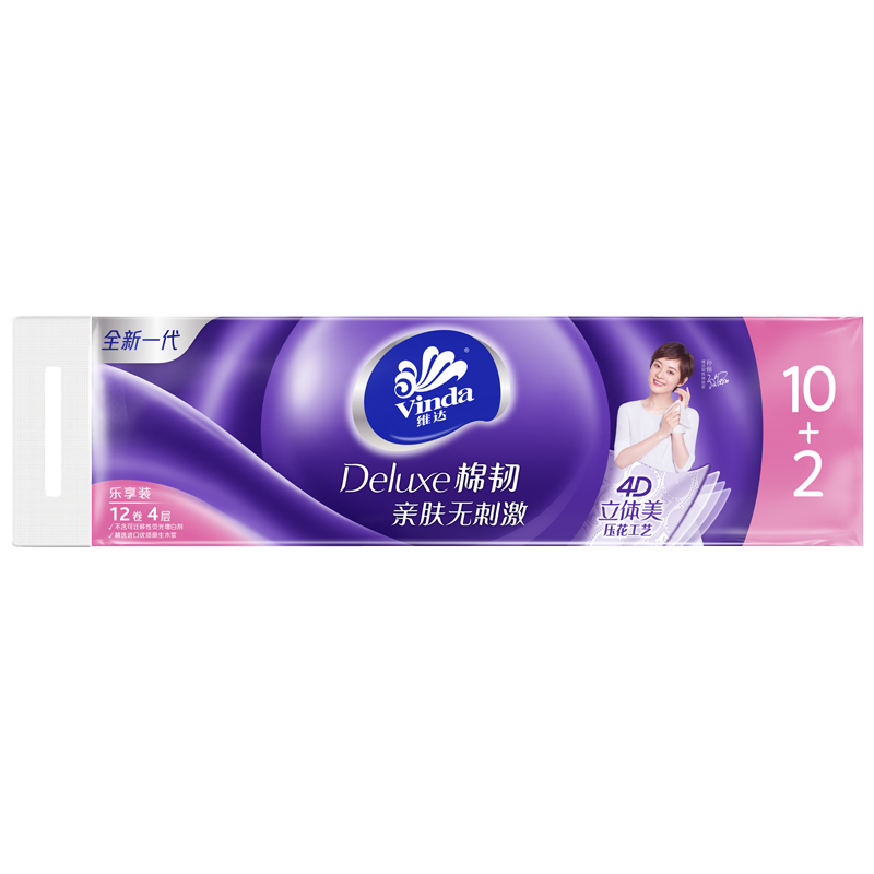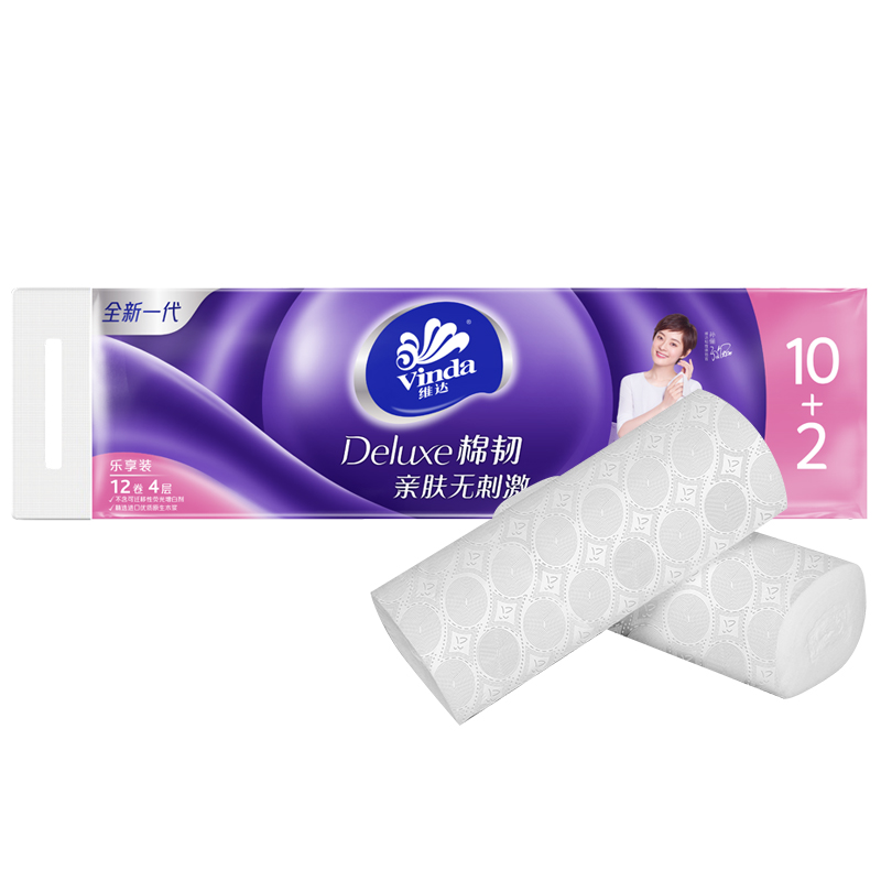 Vinda coreless roll toilet paper Three-dimensional embossed toilet paper 4 layers 120 grams 24 rolls of household affordable mother and baby available paper