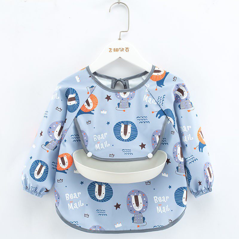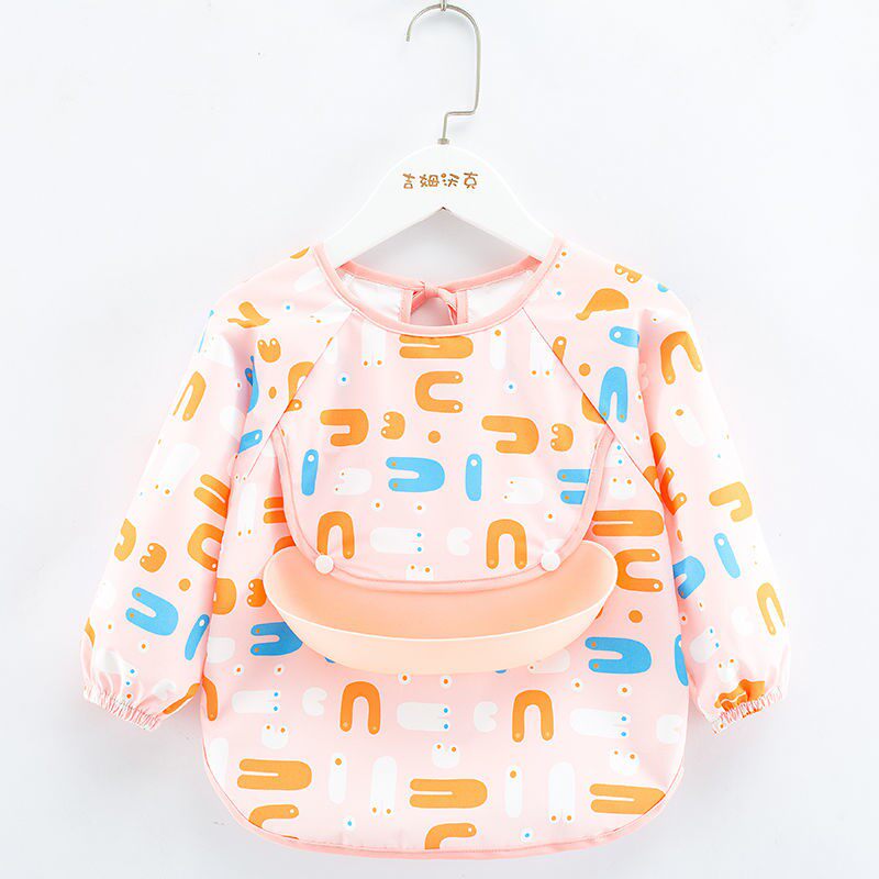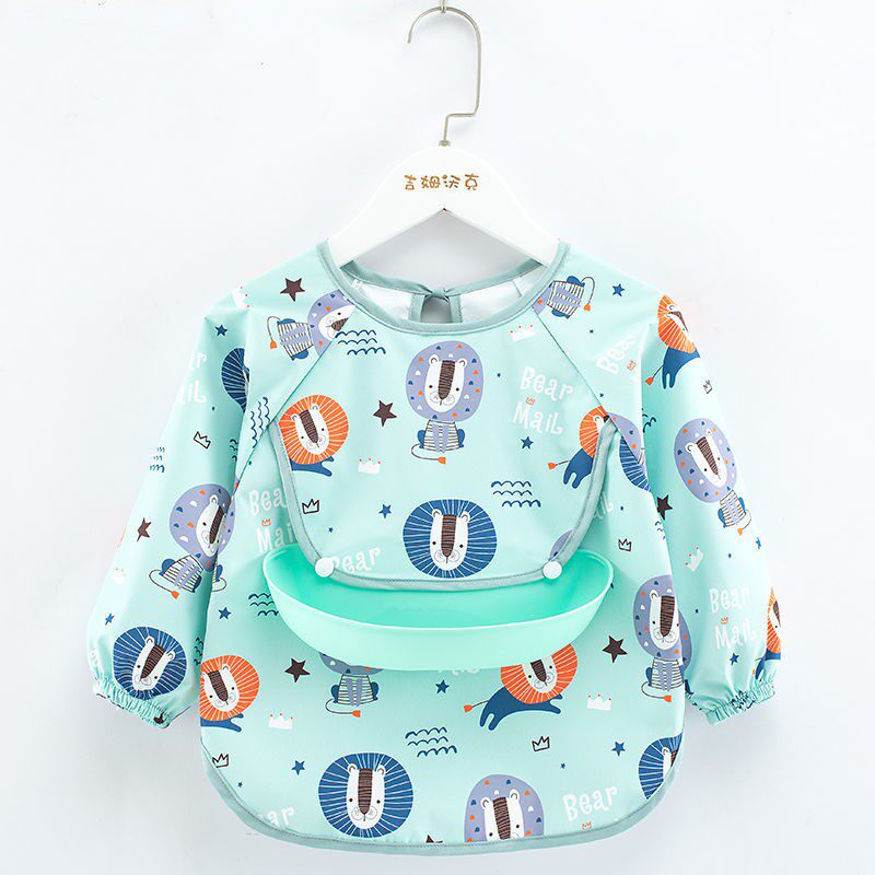 Baby Dinner Bib Pocket for children Waterproof Anti-Dirty Autumn Winter Long Sleeve Baby Silicone Bib Hood for men and women Anti-wearing protective clothing