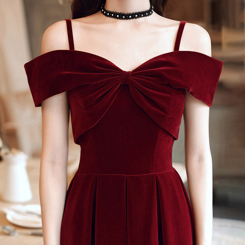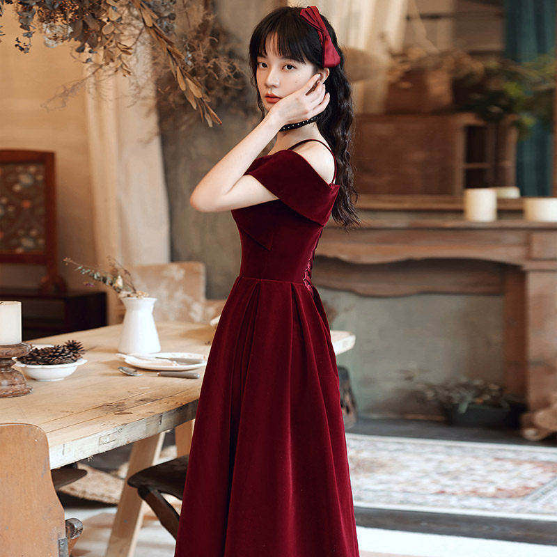 Wine red toast dress 2021 summer new bridal temperament suspender velvet engagement dress female wedding dress