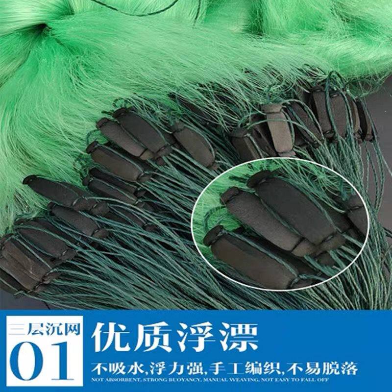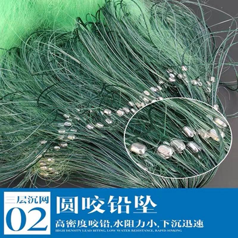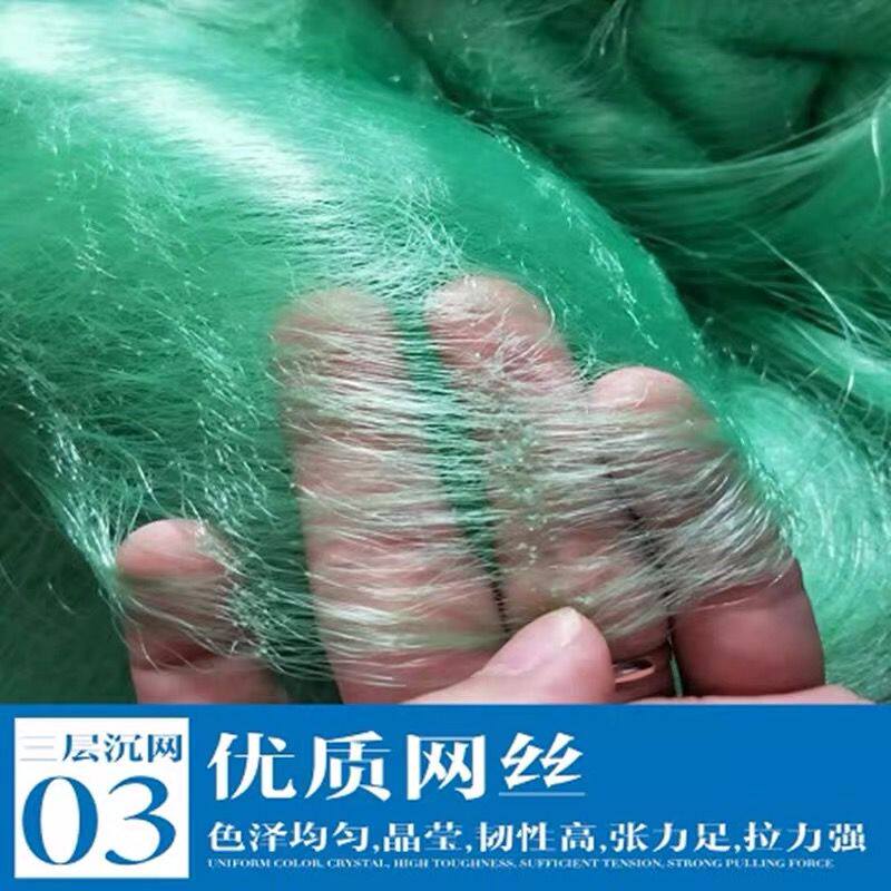 Green silk 1 5 meters 2 5 fingers 90 meters long three-layer sinking net green silk 1 5 meters 3 fingers 90 meters long three-layer sinking net green silk 1 5 meters 4 fingers 100 meters long three-layer sinking net green silk 1 5 meters 5 fingers 1