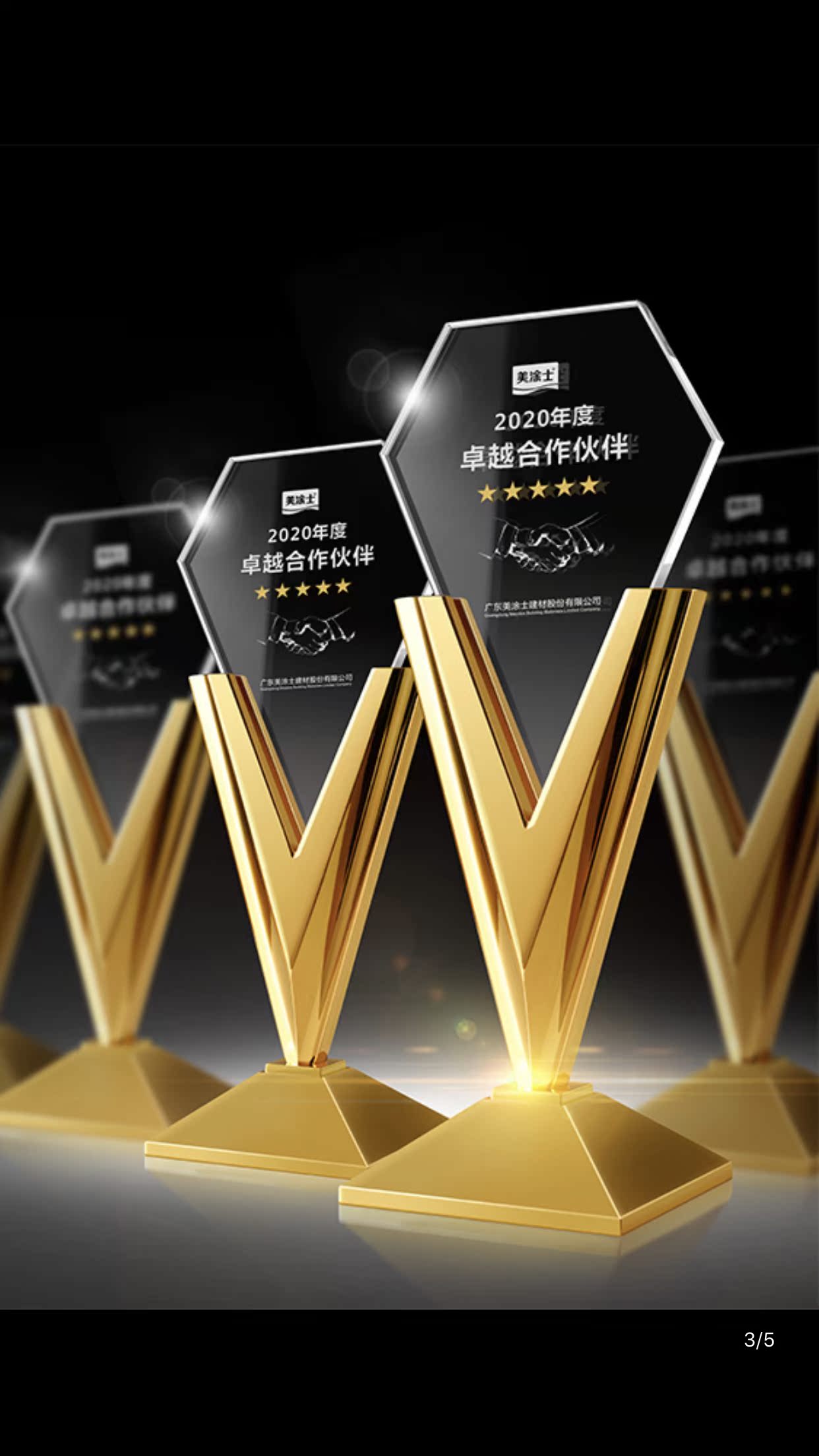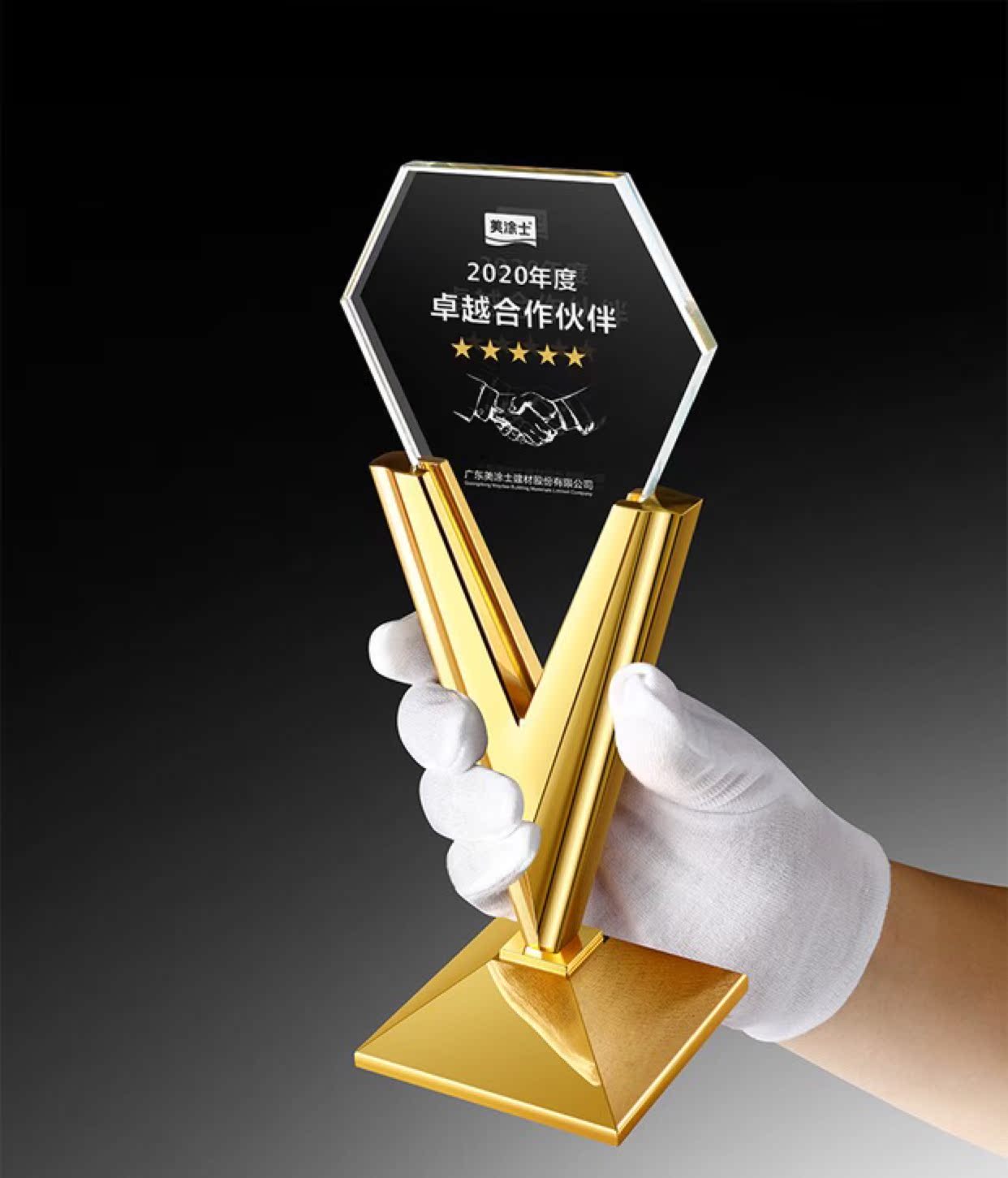 Crystal Trophy Customised Upscale Creative V Glyph Electroplating Metal Company Annual Meeting Excellent Employees Award Lettering