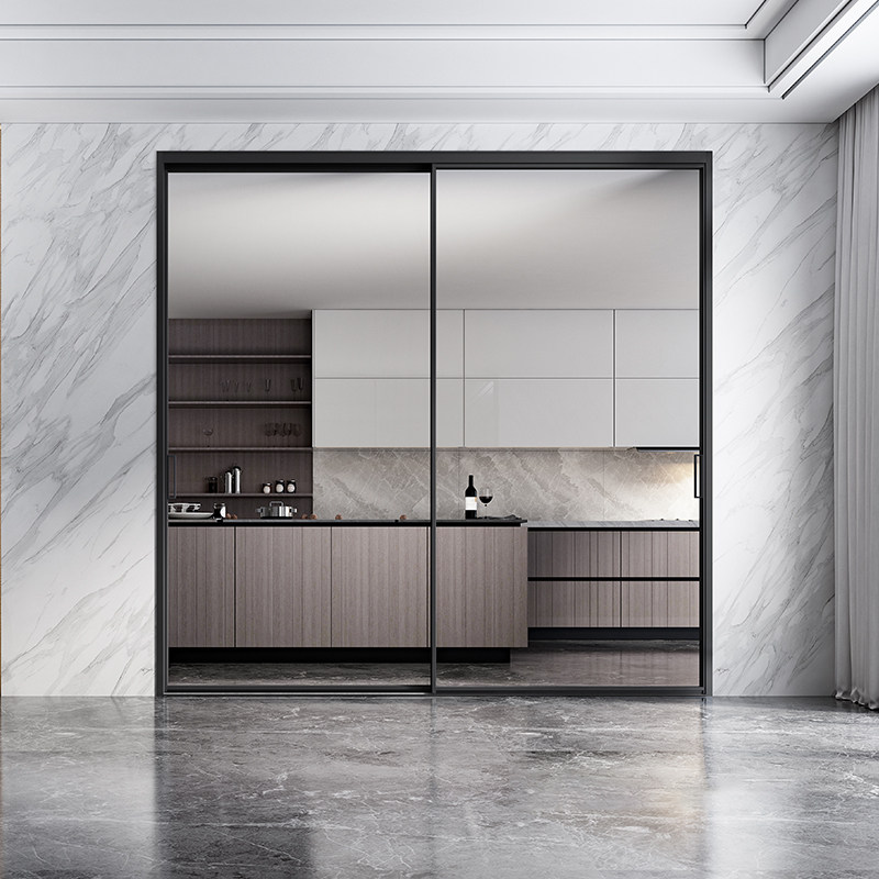Custom sliding door balcony living room kitchen partition very narrow frame glass door modern minimalist aluminum alloy hanging wheel door