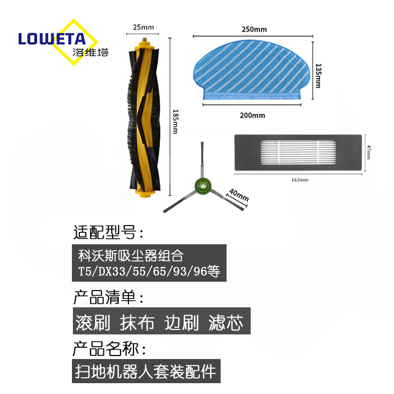 Main brush 1 filter 4 rags 5 pieces side brush 3 pairs of 1 main brush 3 sets of filters 6 side brushes 1 main brush 5 sets of filters 5 rags 2 pairs of side brushes Main brush 1