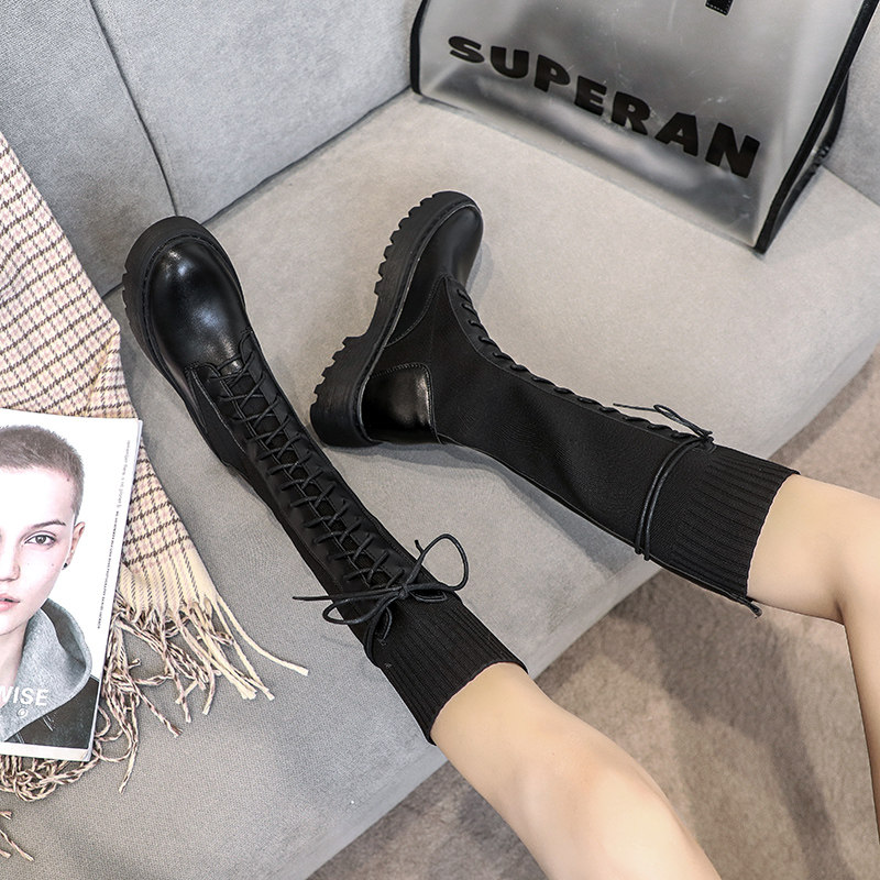 Cycling boots women's 2021 new short stature mid-length boots thick heel long tube thick bottom but knee net red mid-tube boots