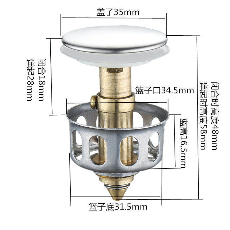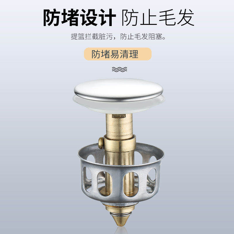 Wash basin bouncing filter Stainless steel anti-blocking basket Basin drainer Press water plug Hair filter