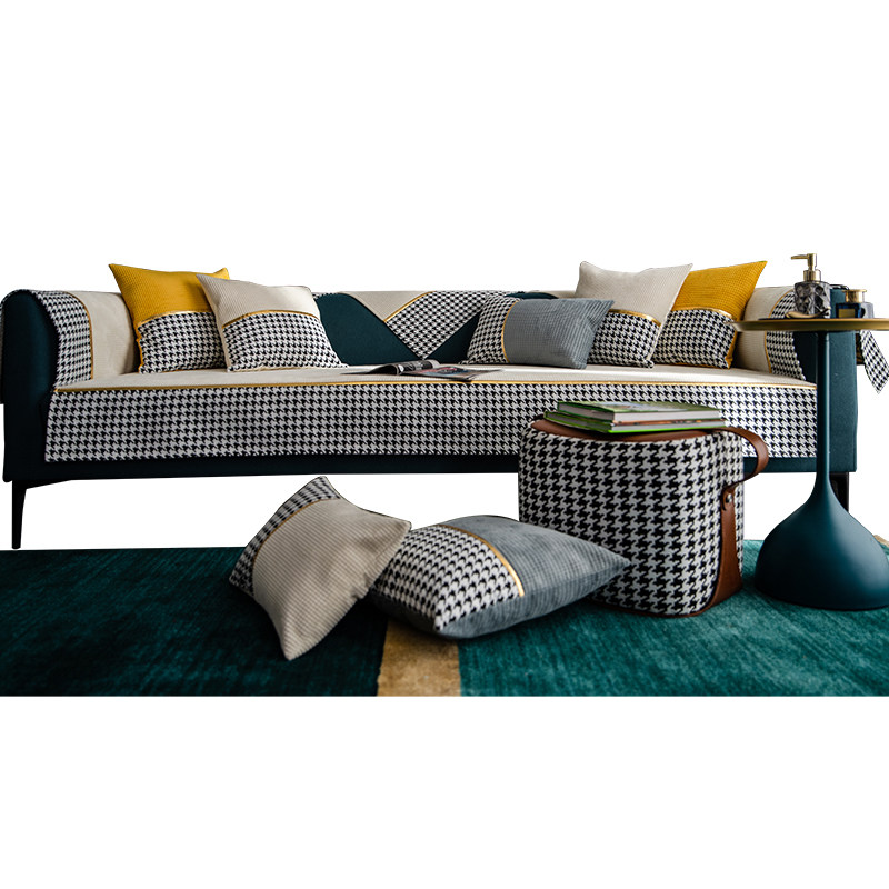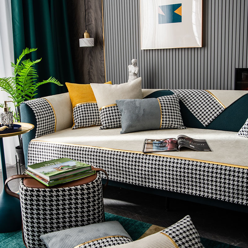 Off-white light luxury houndstooth high-end sofa cushion four seasons non-slip universal Nordic simple modern cover towel cover cloth