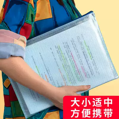 Thickened A4 file bag Transparent zipper bag Grid test paper storage folder Canvas file bag Student stationery Korean cute exam special A5 large-capacity plastic bag with information
