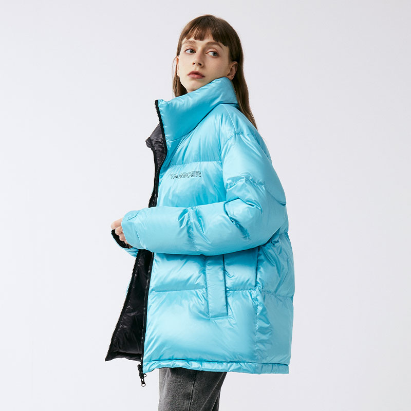 Tanbol Anti-season clear bin down jacket Male Short two sides wearing male and female couples Bright Face Warm Autumn Winter Jacket