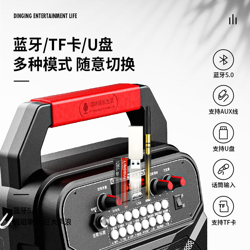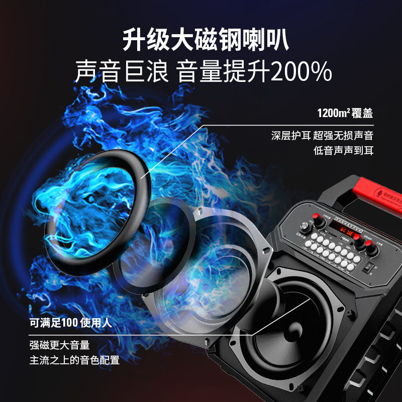 Portable blow pipe small speaker comes with sound card sound effect K song Bluetooth eliminate original sound singing outdoor square dance