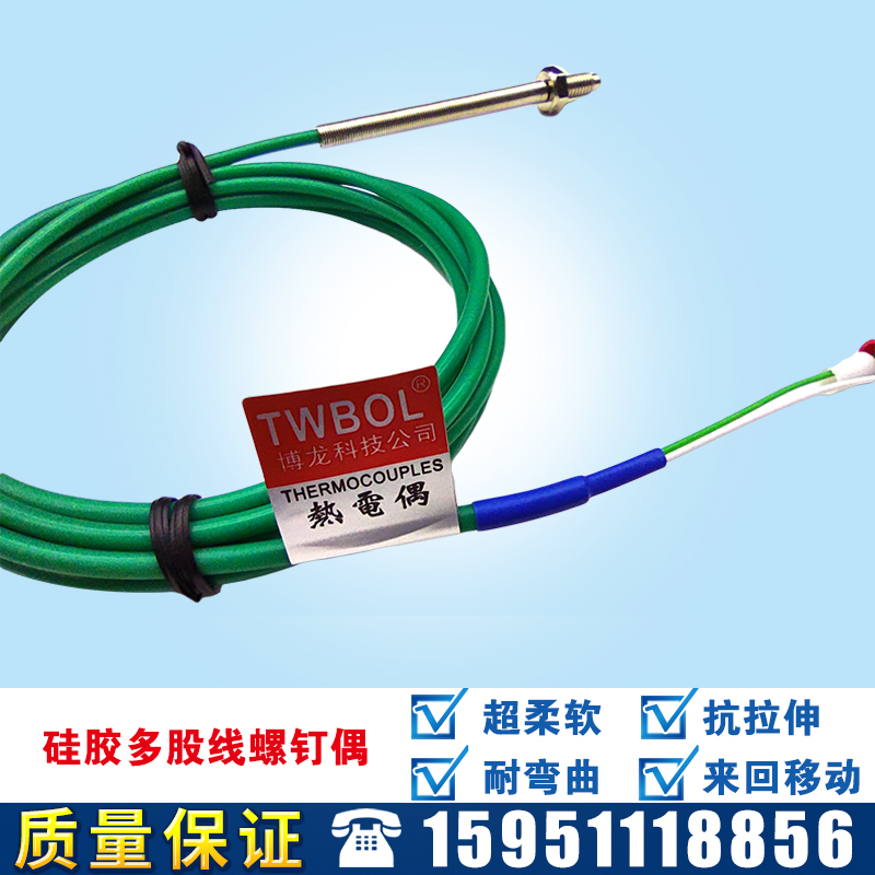 Silicone wire screw double K - type M 6 soft wire temperature - measurement line multi - unit thermocouple bending back and forth movement of temperature probe