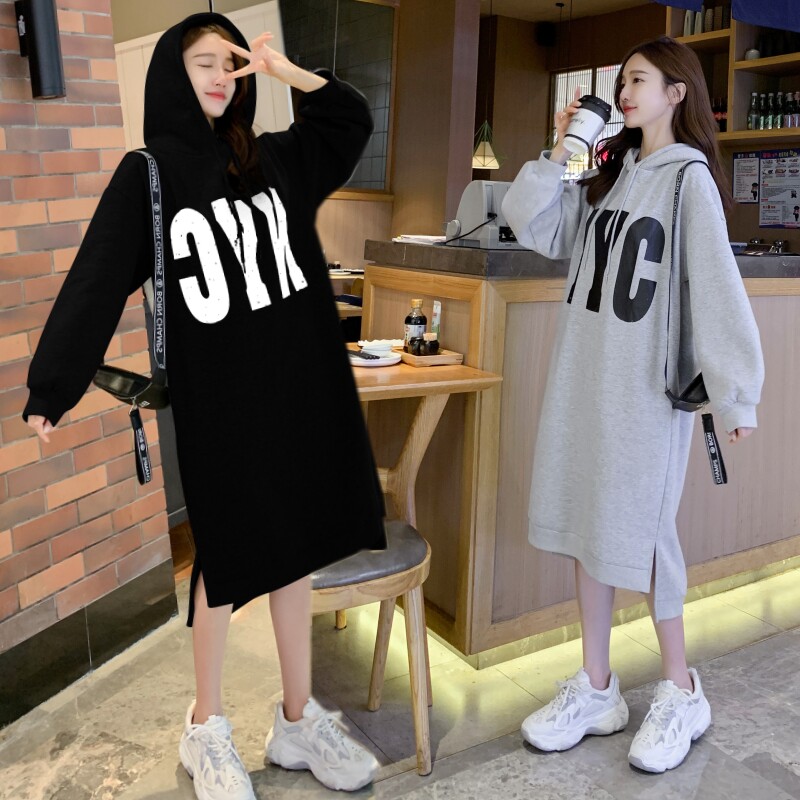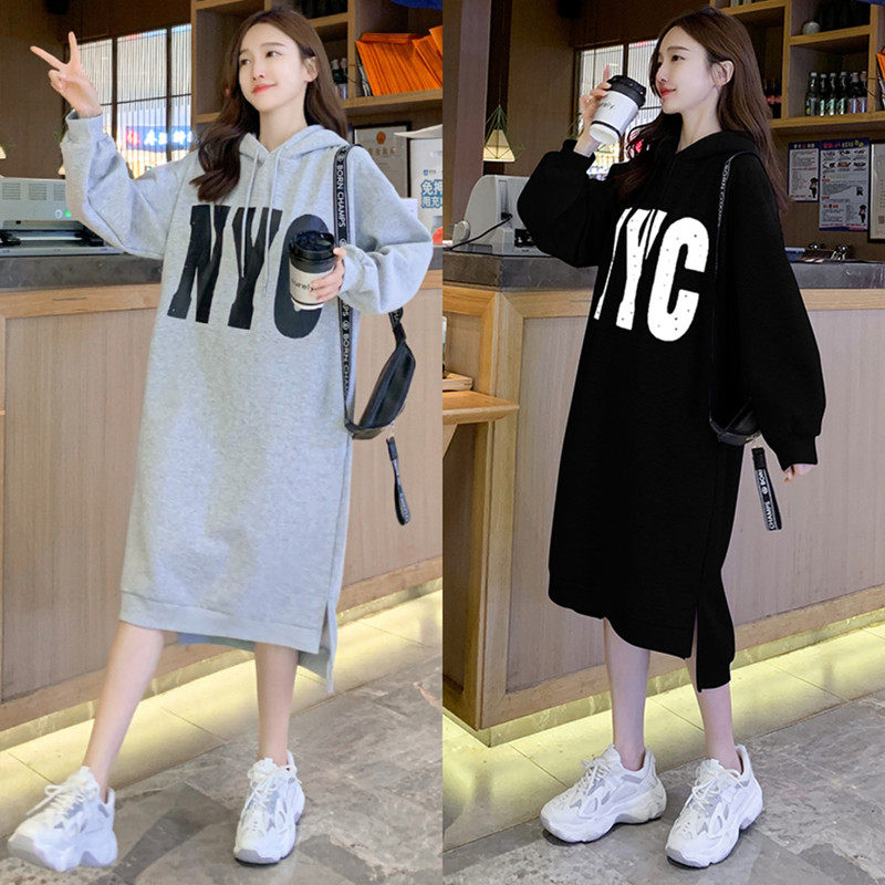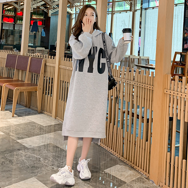 Autumn Winter Grand size Pregnancy Woman dress Korean version plus velvet clothing Fat MM Ocean sent over a knee dress 200 catty of undershirt woman