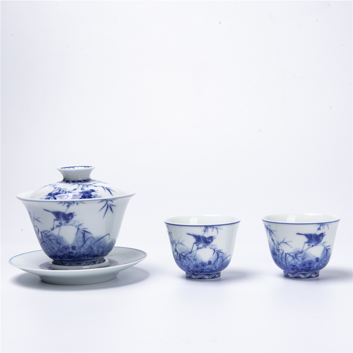 Imitation King Step Flowers Bird Tea Cup Lid Bowl Green Flower Bird Tea Wash Scum Justice Cup Sub tea Tea Ware Tea Set set