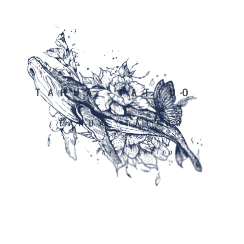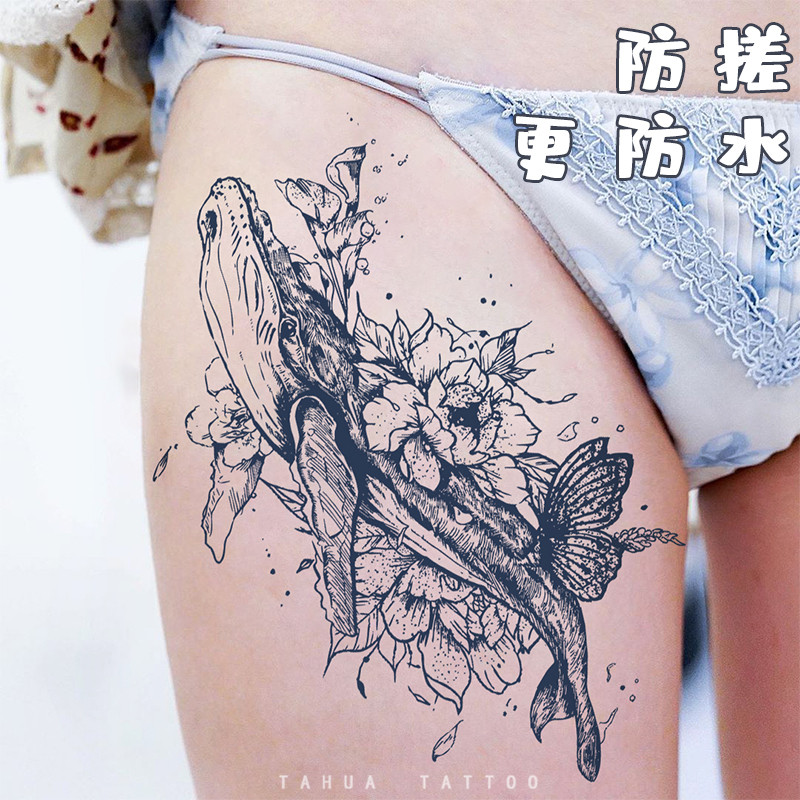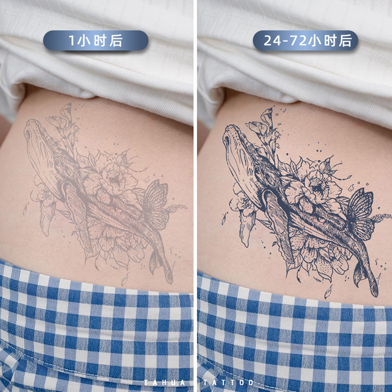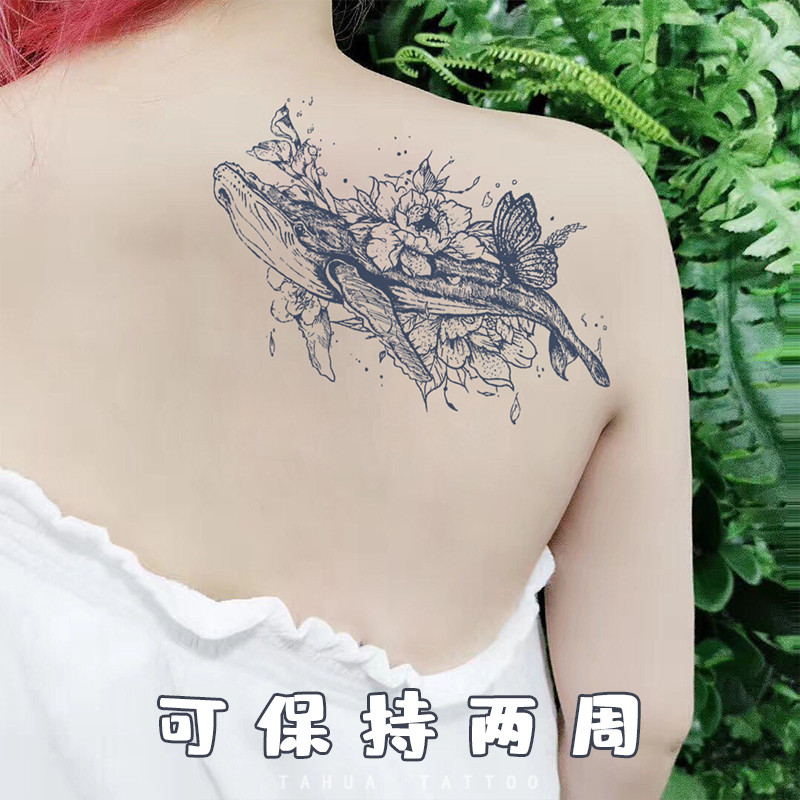 She draws big picture of big fish and begonia juice paste tattoo plant herb semi-permanent waterproof female lasting flower arm whale