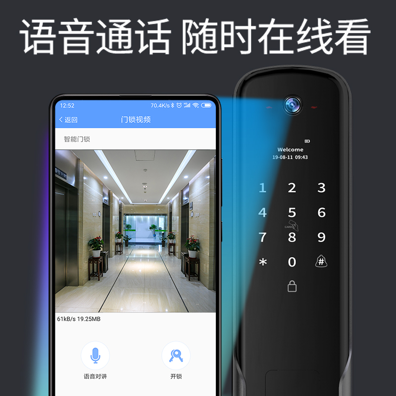Juexiang automatic fingerprint lock home anti-theft door smart door lock electronic lock password lock with surveillance camera