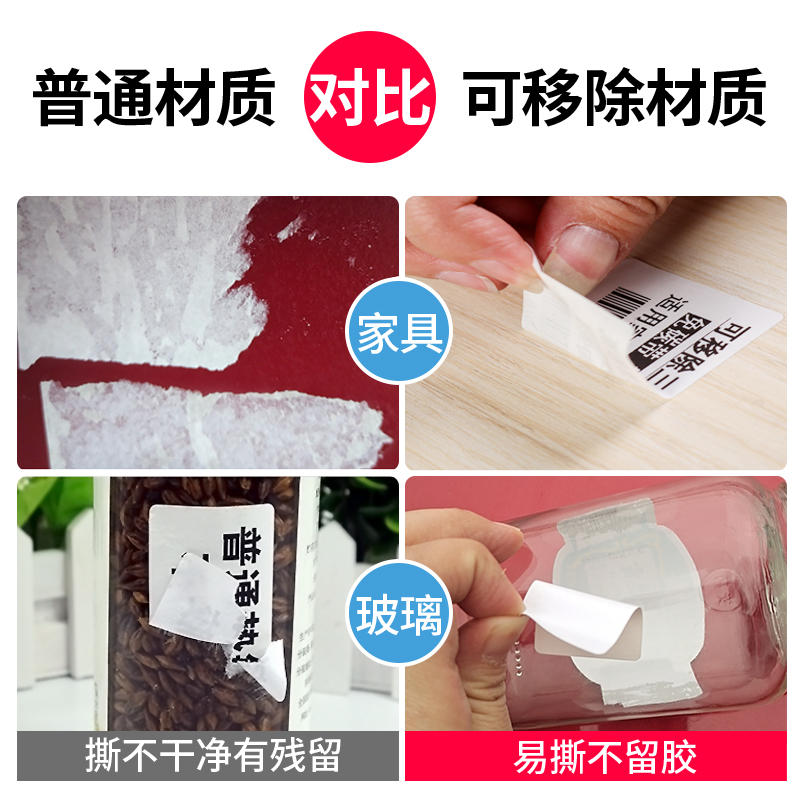 60*40*800 sheets, horizontal version (removable heat sensitive, no glue, will tear) 60*40*500 sheets, horizontal version (tearable, removable heat sensitive, no glue, thickened
