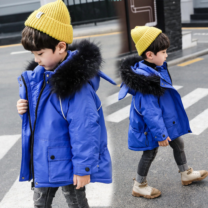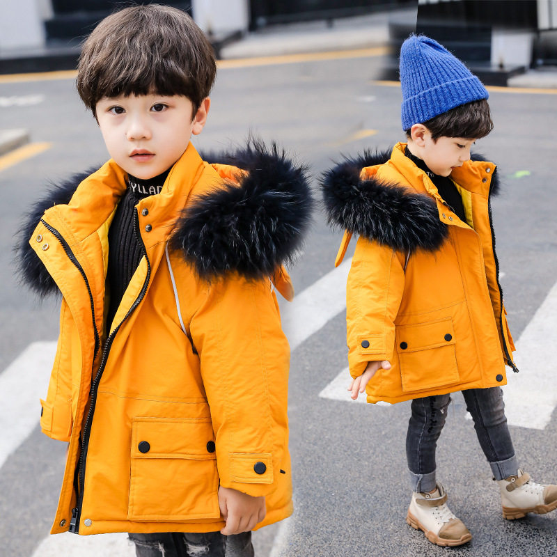 next jazz boy down jacket 2021 new foreign pie small and airy baby girl big fur collar thickened coat winter