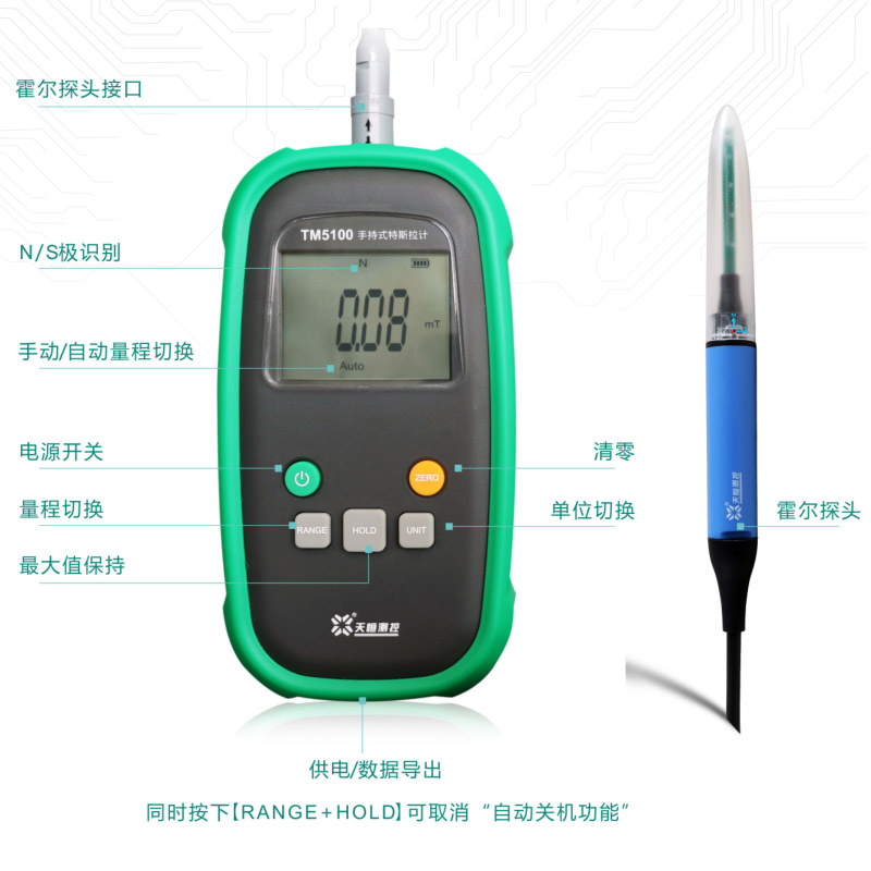 High precision magnetic field detector TM5100 high scooters permanent magnet iron residual magnetic magnetic measurement portable Tesla meter-Taobao