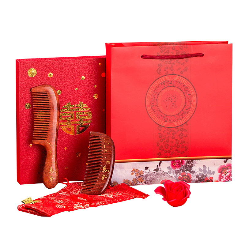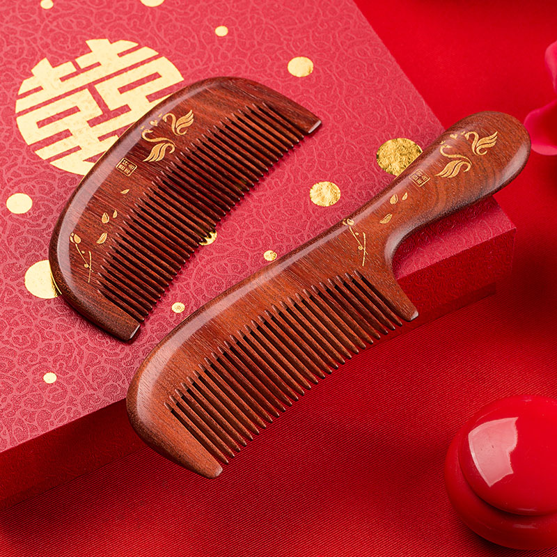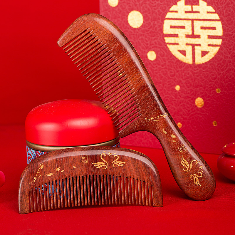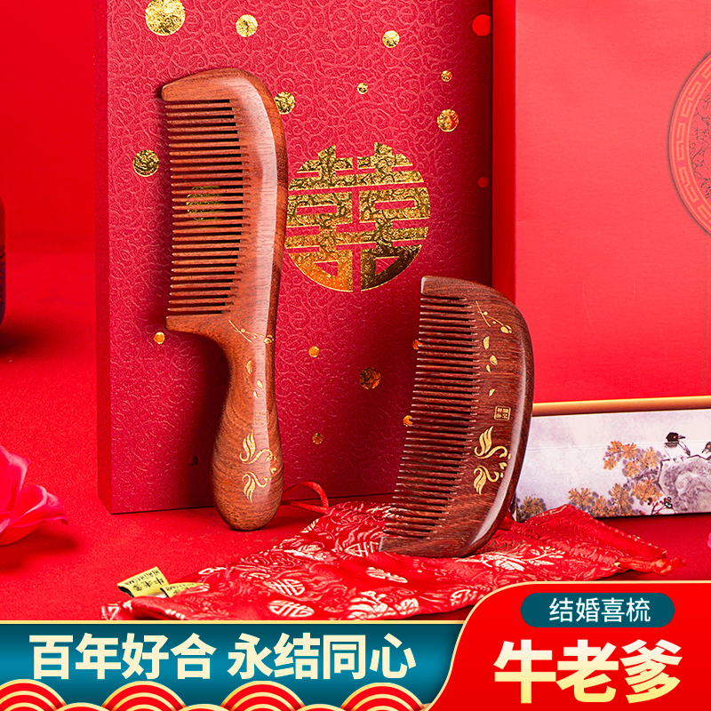 Cow Dad bride wedding comb A pair of wedding wooden comb gift red happy comb to accompany the wedding creative custom lettering