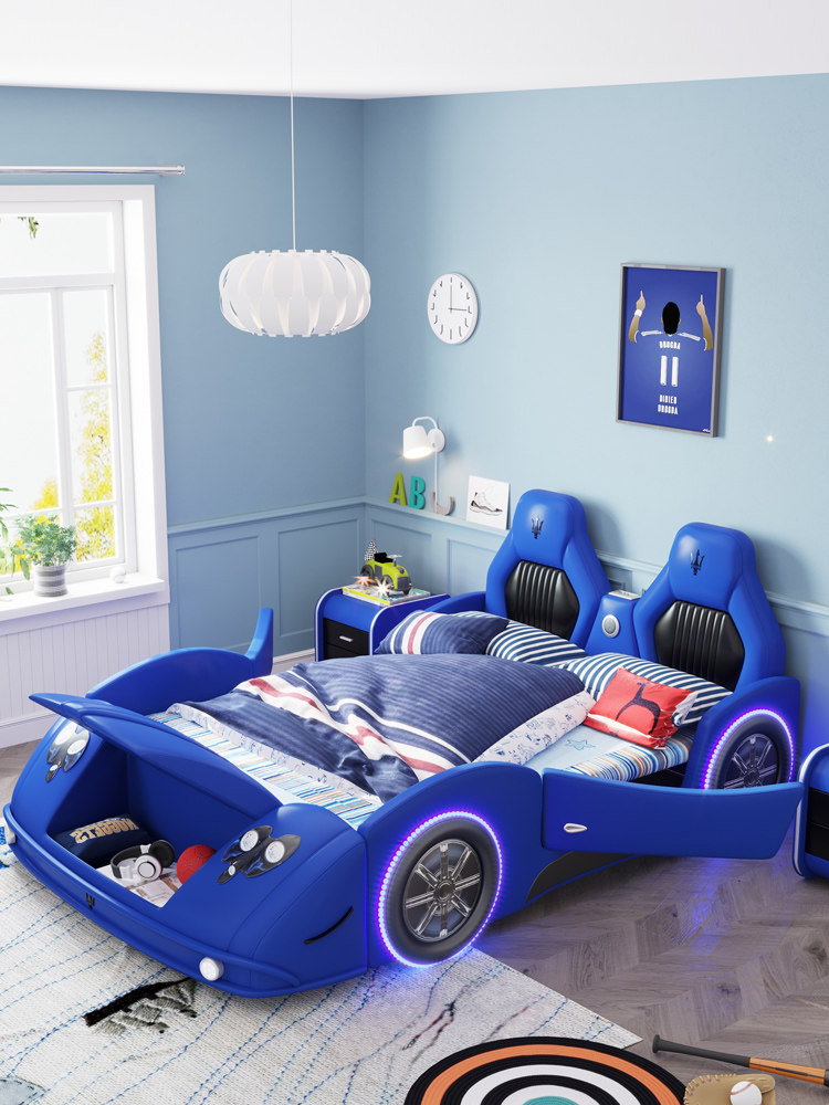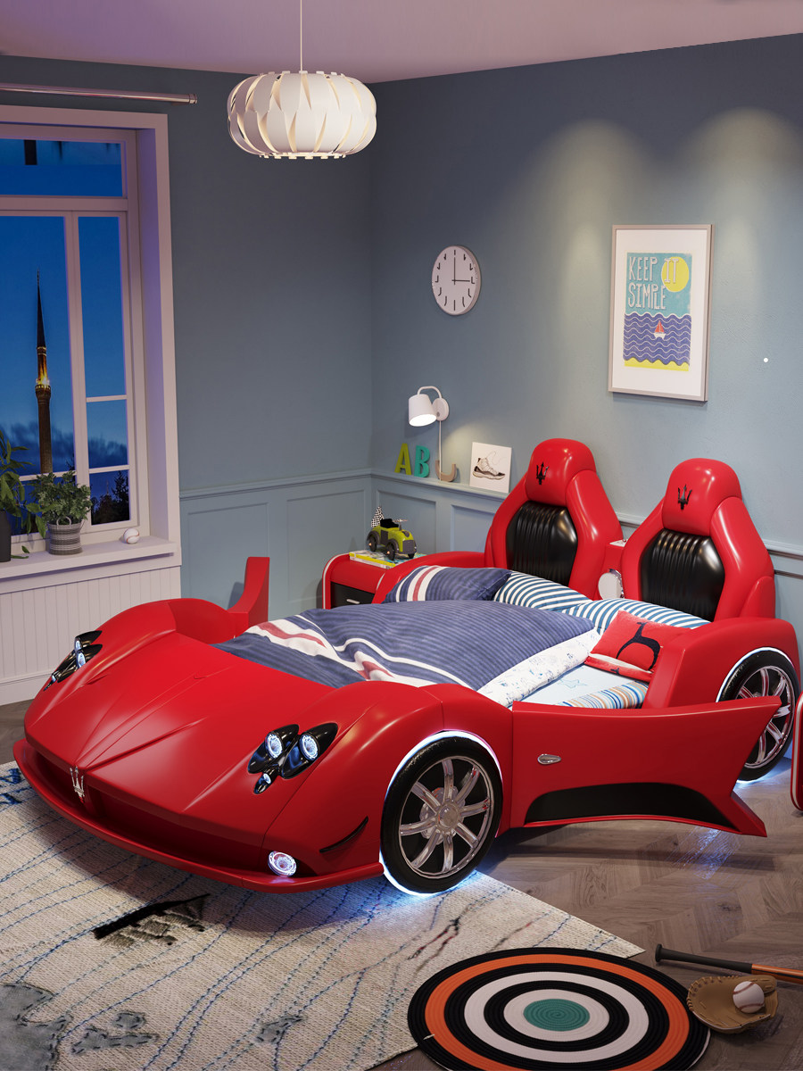 Children's bed boy sports car creative leather bed multi-function car bed cartoon 1 2 meters single cartoon bed spot