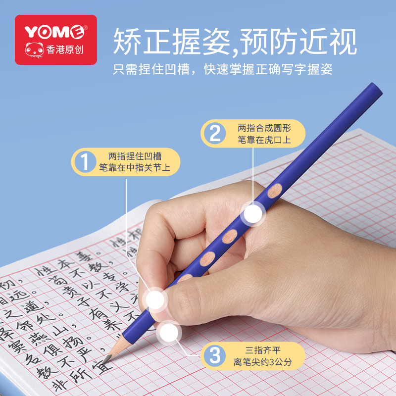 yome Primary school student hole hole pencil Children's correction grip hexagon rod practice hb kindergarten beginner first grade