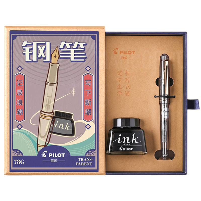 Japanese pilot Baile FP-78G pen transparent retro gift box with ink replaceable ink bag students with EF F M B golden tip adult calligraphy business gift gift