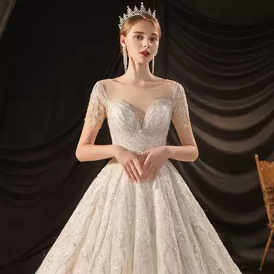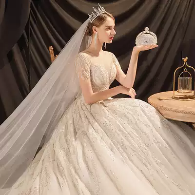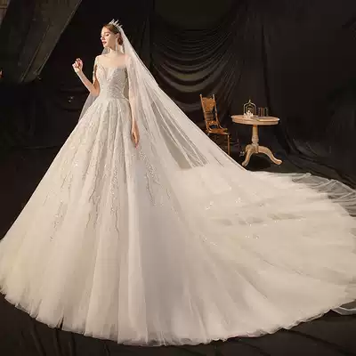 Main wedding dress 2021 new big tail Mori super fairy dream temperament bride Hepburn high-end fashion luxury