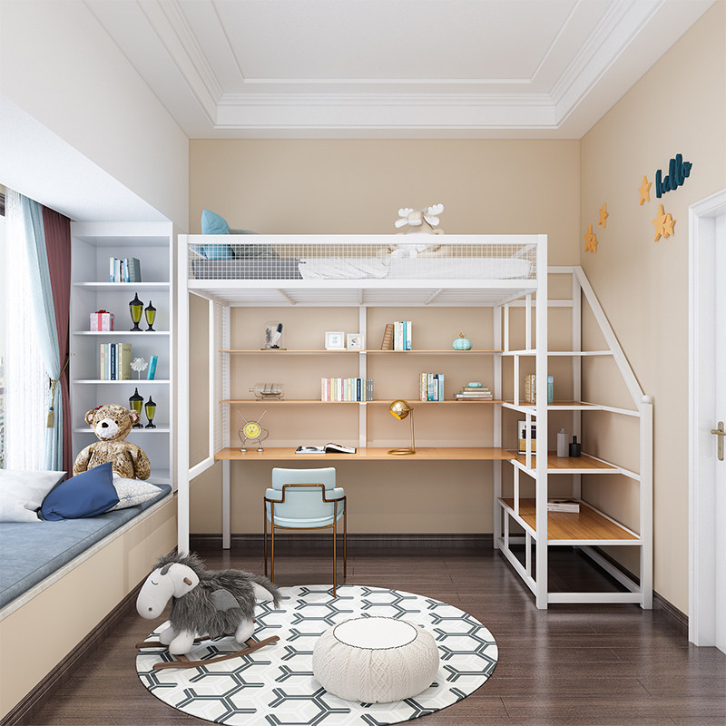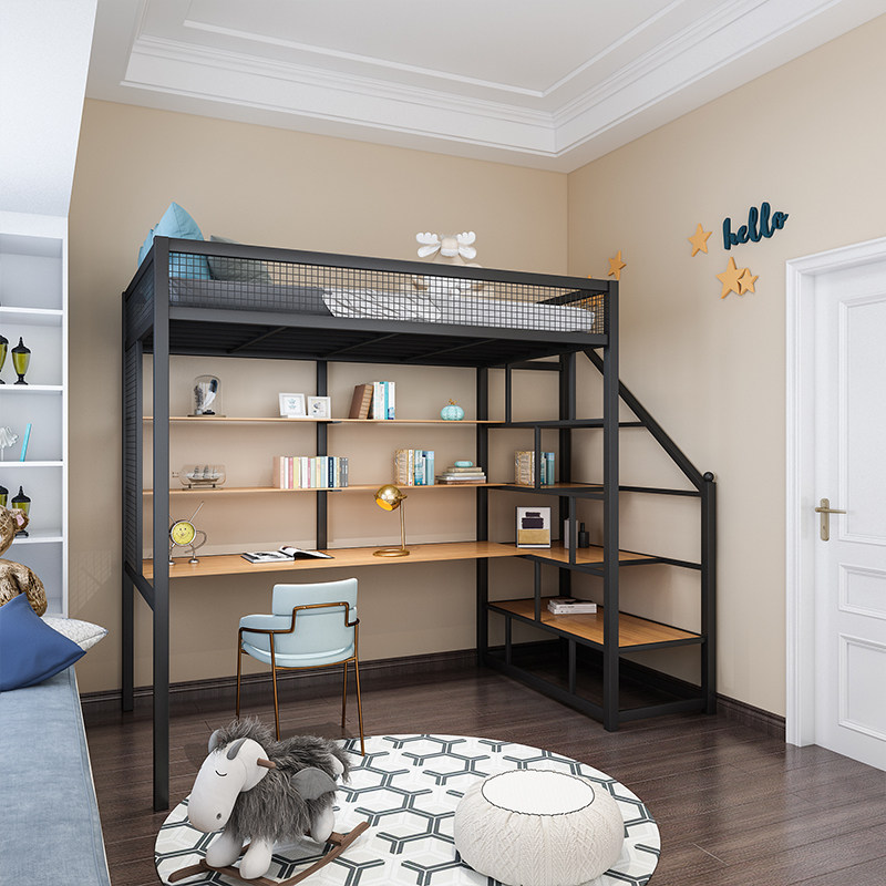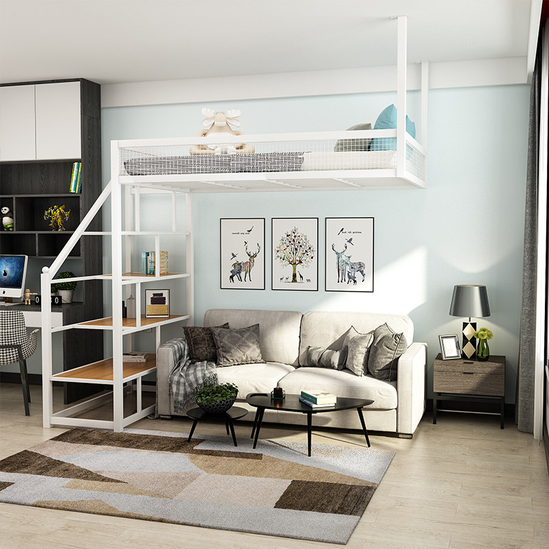 Nordic wrought iron stand upper level small loft space multifunctional up and down bed modern simple double bed
