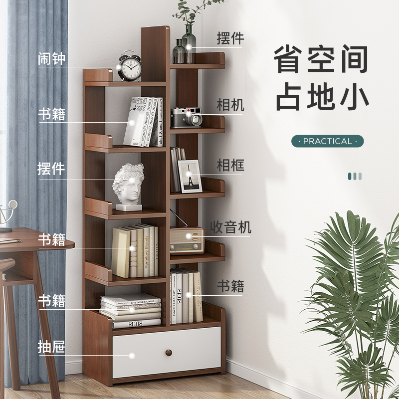 Bookshelf floor-to-ceiling rack small solid wood color Nordic simple home simple living room creative storage rack rack