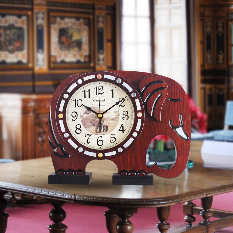 Chinese living room table clock Wooden mute bedroom table clock Desktop decorative quartz clock Solid wood Chinese style ornaments