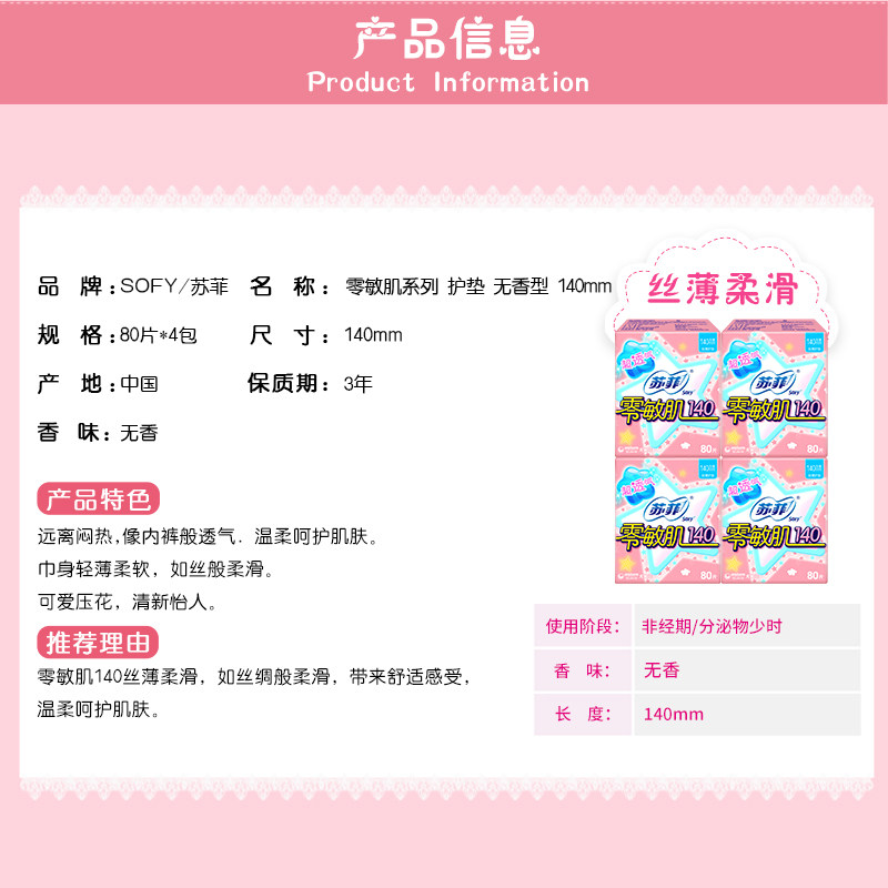sofy Sophie Pad Gentle Care Skin Zero Sensitive Muscle Silk Thin Silk Slim Silk 80 Tablets 4 Pack 140mm