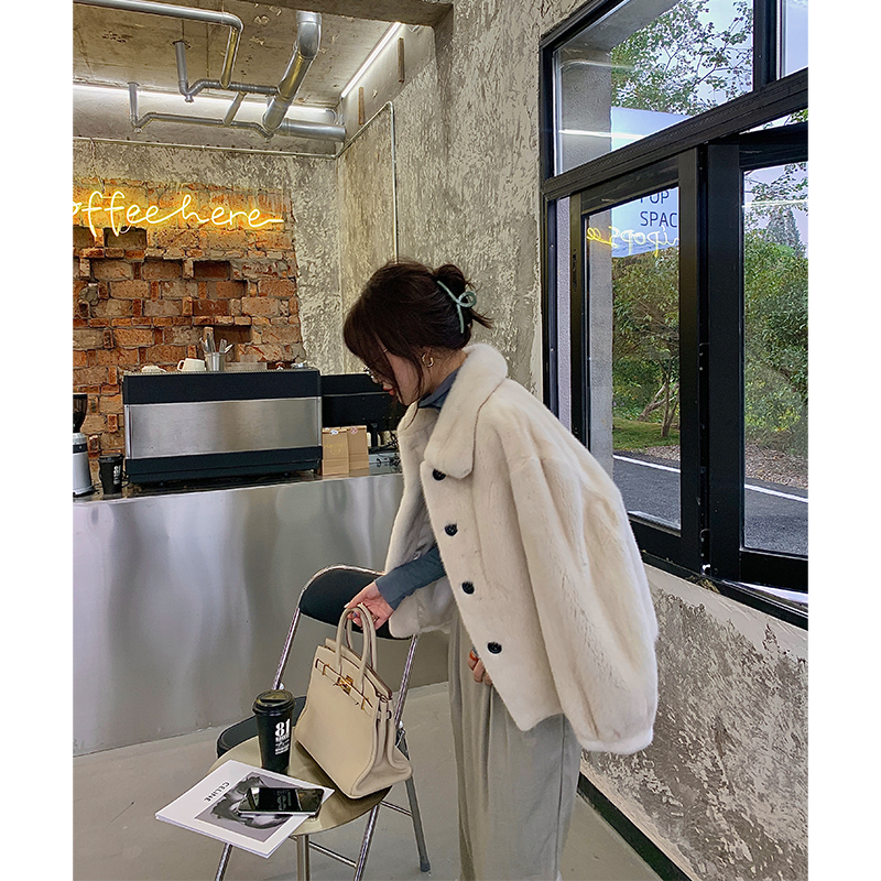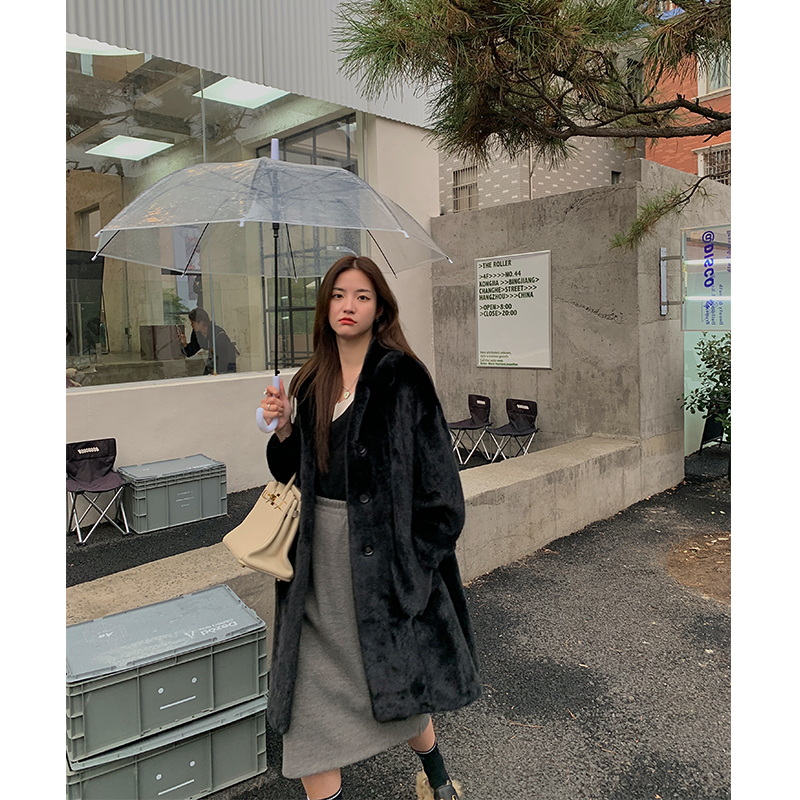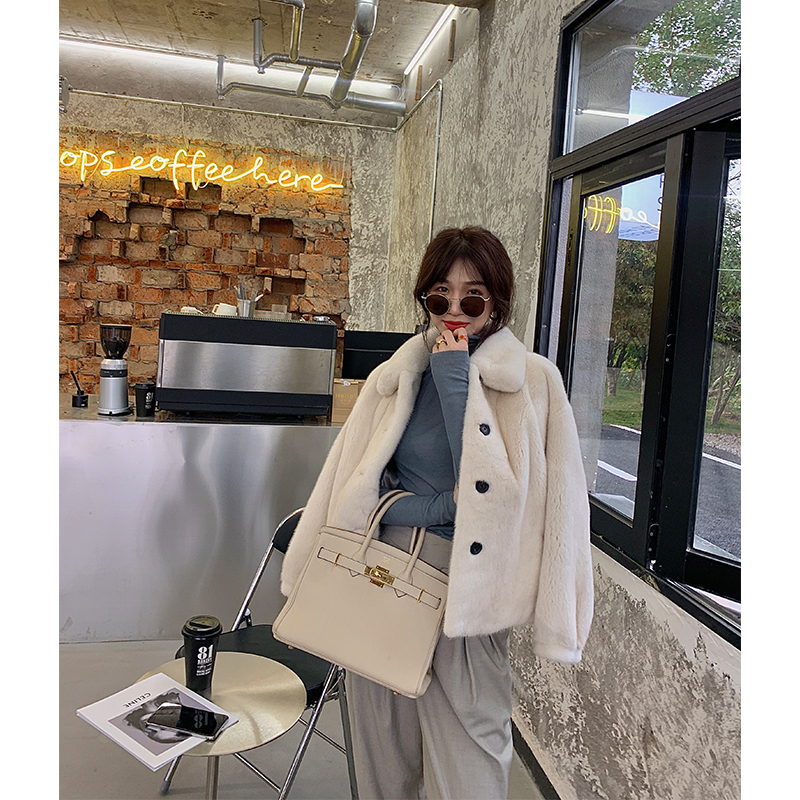 CC fur "decapitated ferrets" import Purple Mark Grade Ferret Fur Fur Coats Women Mid square fronted ferret fur coat
