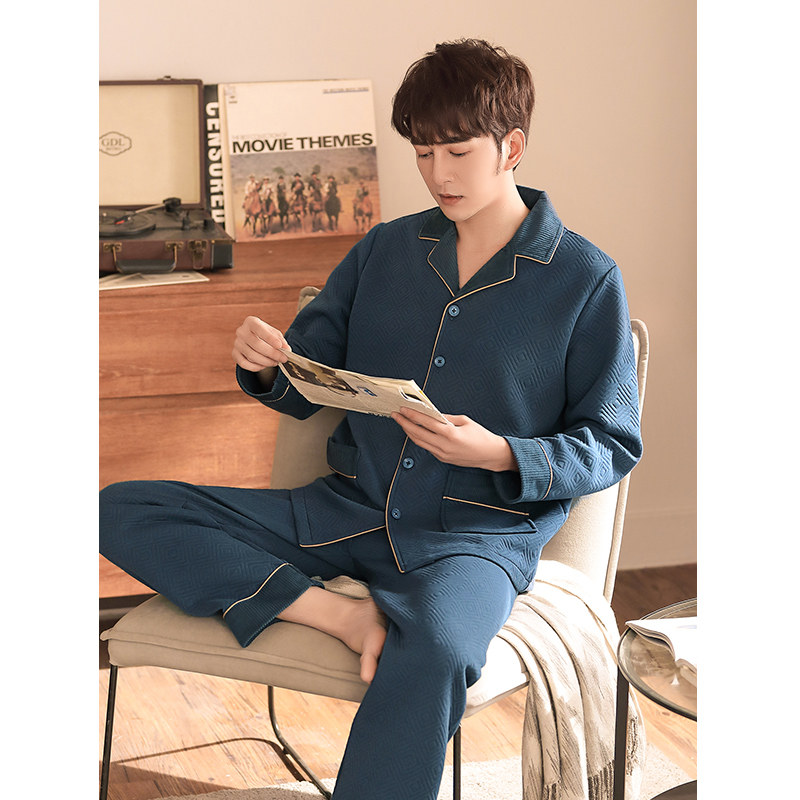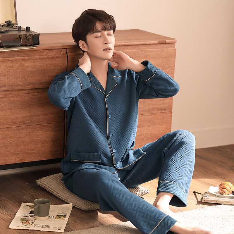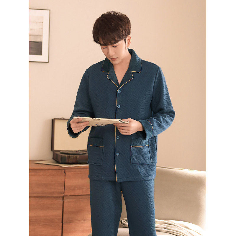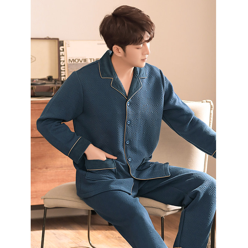 Youth pajamas men's cotton thickened autumn and winter can go out home clothes winter thin quilted three-layer heating pants