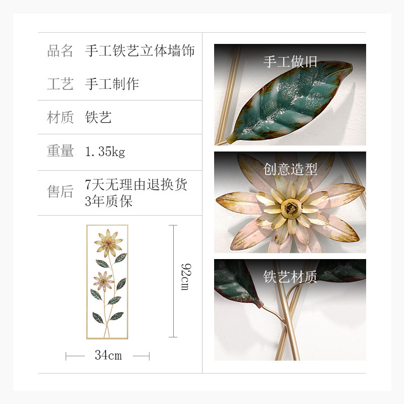 American Wall Decoration Creative Wall Decoration Flowers Hanging Flower Dining Hall Wall Genguan Walkway Metal Pendant Wall Decoration