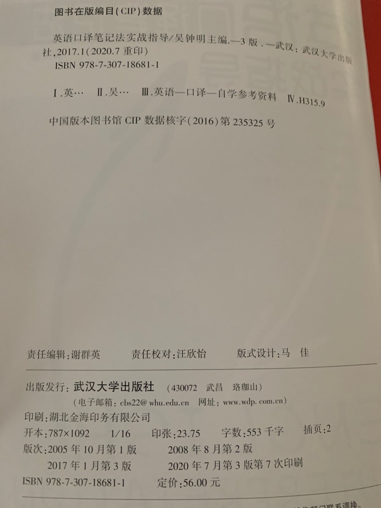 Genuine spot English interpretation note method practical guidance third edition Wu Zhongming Wuhan University Press Interpretation note method usage skills CATTI translation qualification Master of translation Medium and advanced oral