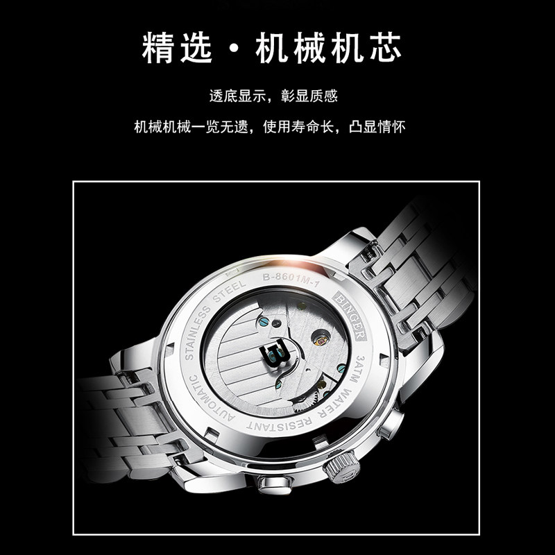 Silver shell and black-faced steel belt (mechanical movement, send leather strap, freight insurance, lifetime warranty) between gold and white steel belt (mechanical movement, send leather strap, freight insurance, lifetime warranty) between gold and blue-faced steel belt
