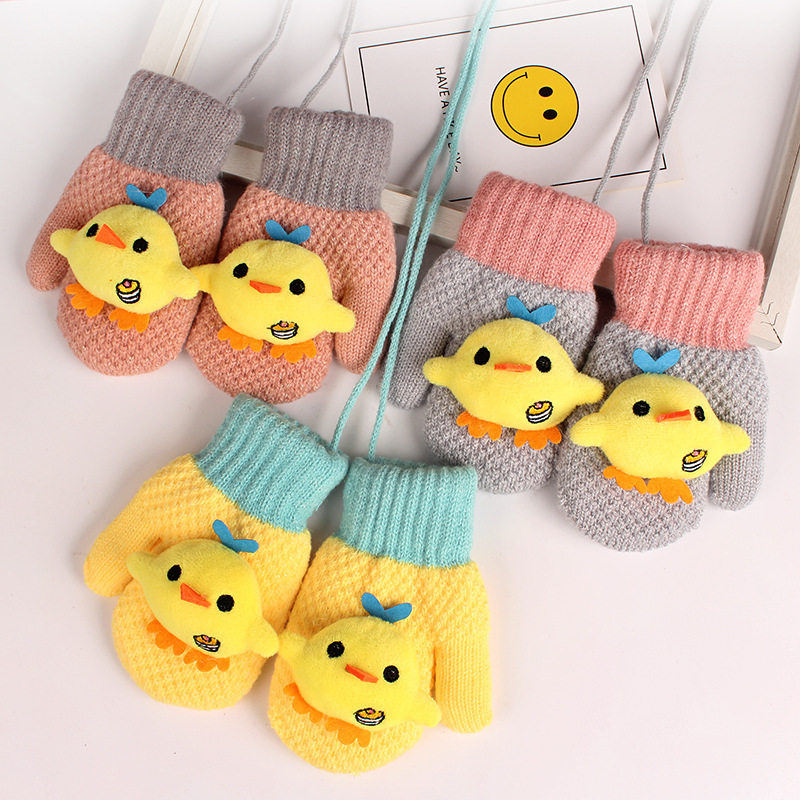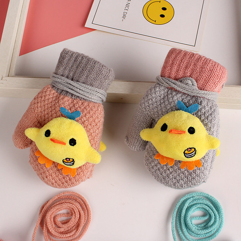 Children's gloves small and medium size 2-6-year-old winter warm kindergarten Cartoon baby gloves Cavelvet thickened